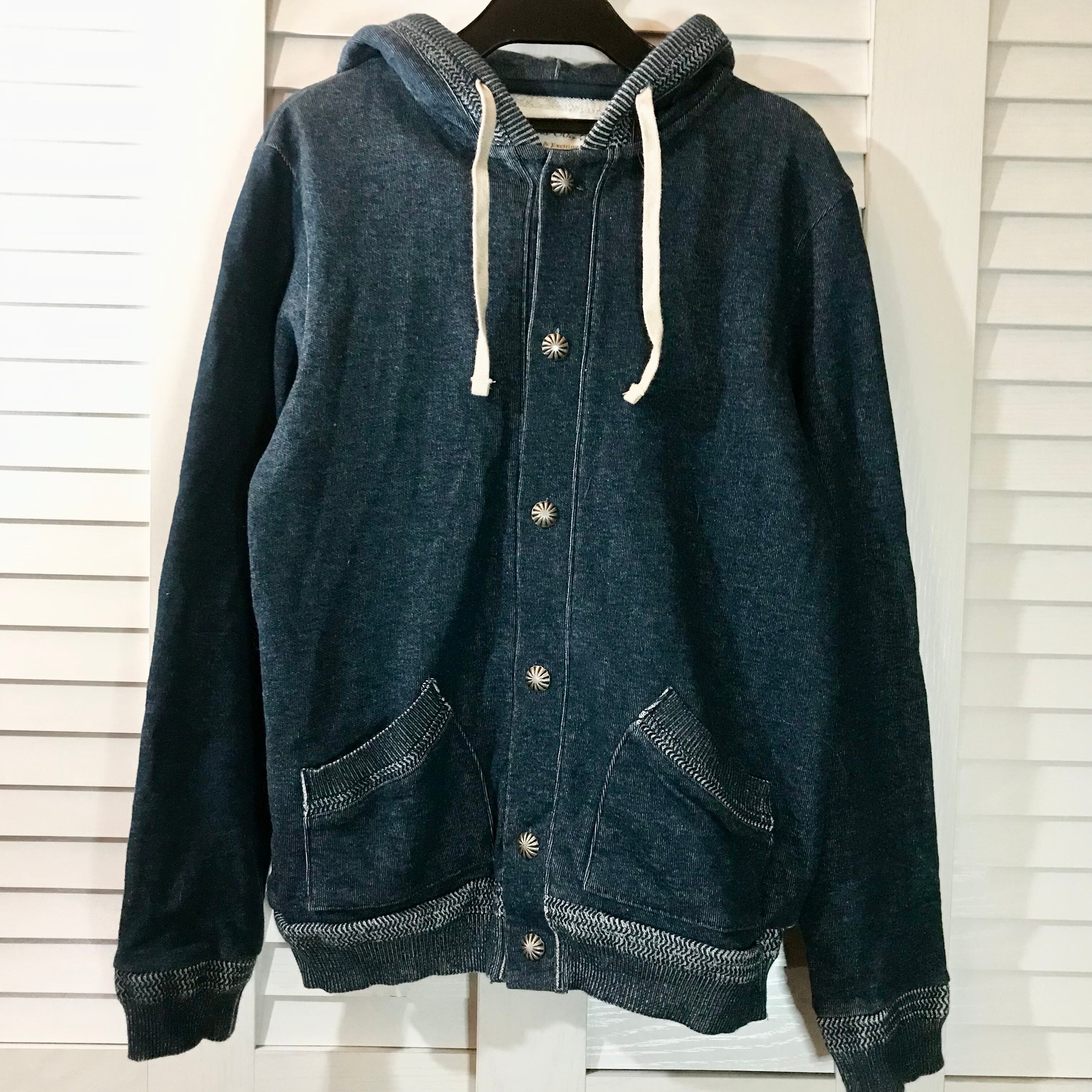 Beams コンチョボタン インディゴ染めスウェットパーカー