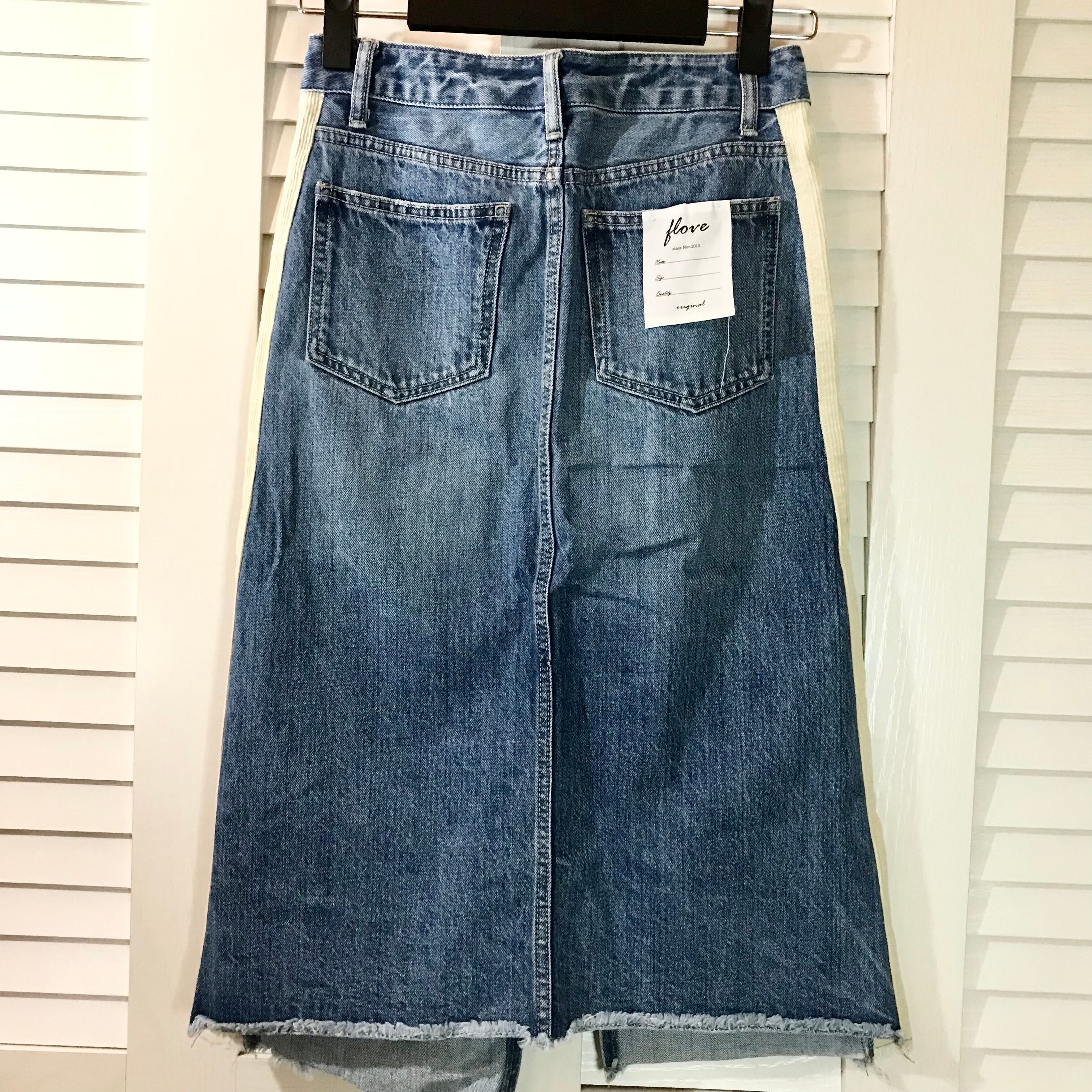 FLOVE 細コールラインのヴィンテージリメイク風デニムスカート