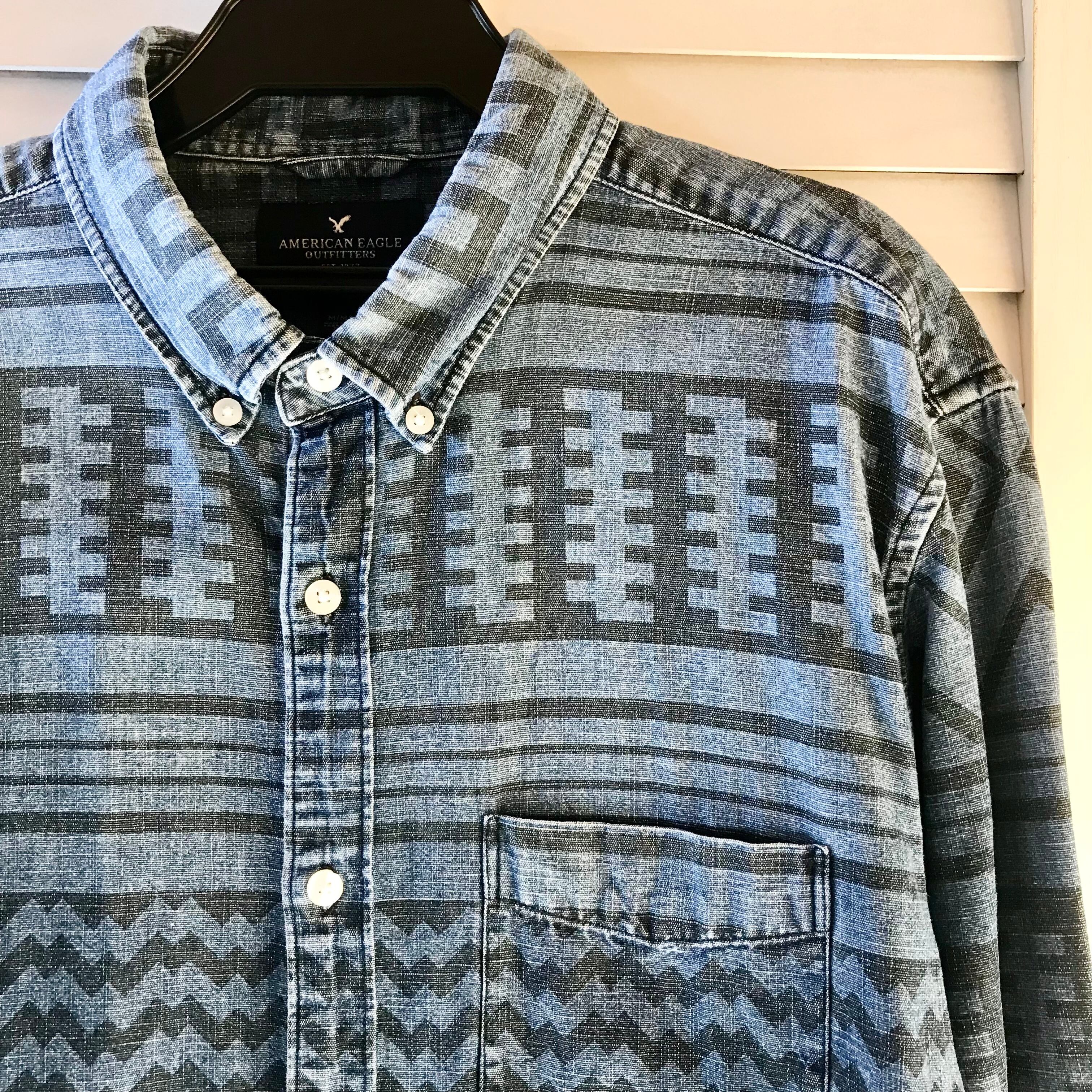 American Eagle ヴィンテージ風モロッコ柄デニムダンガリーボタンダウンシャツ