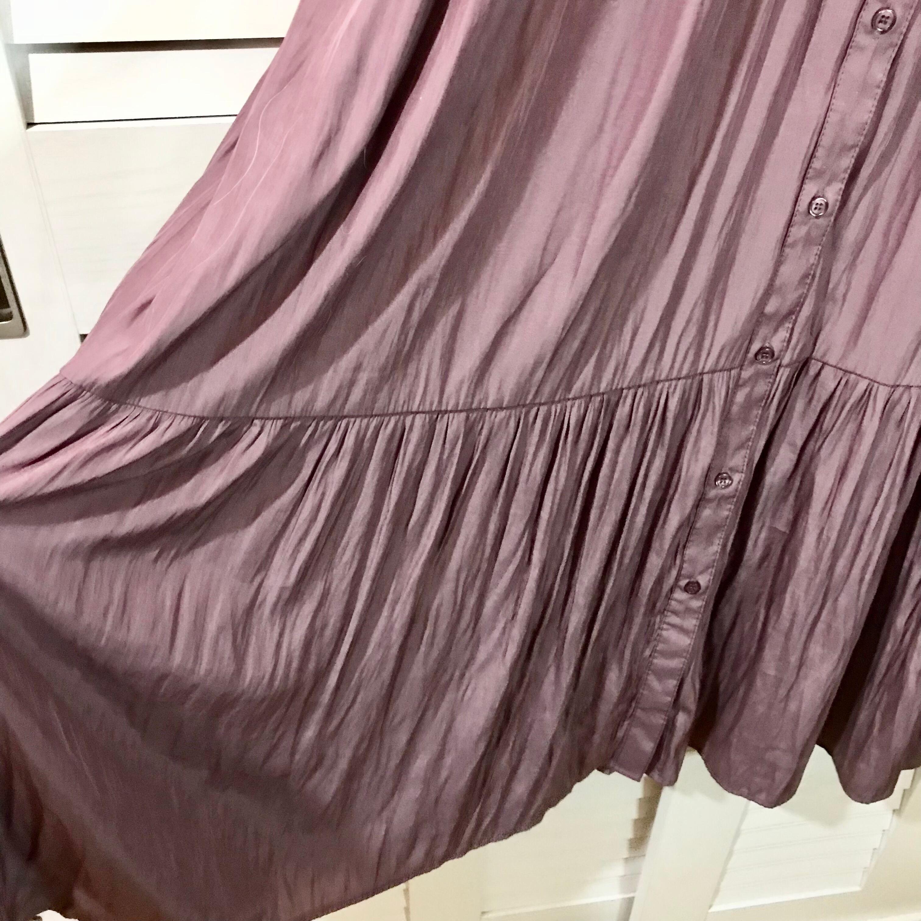 Dessin グレイッシュラベンダーのミドルネック ワッシャー加工ティアードシャツワンピ
