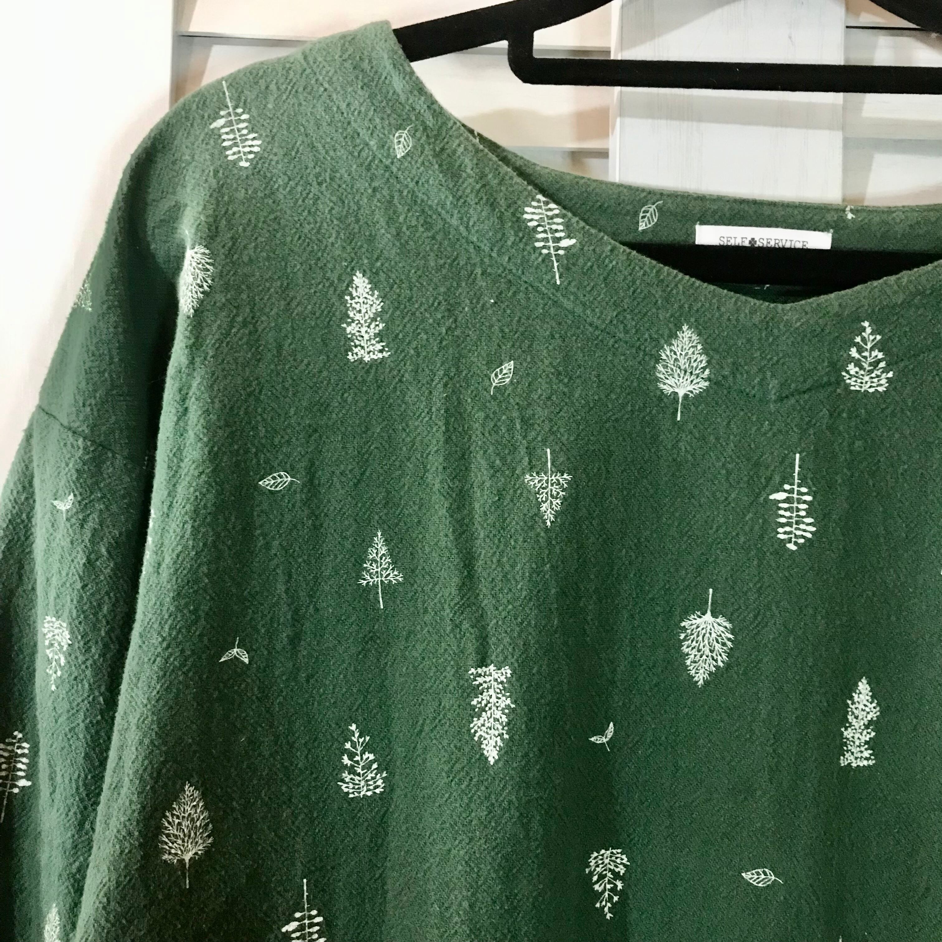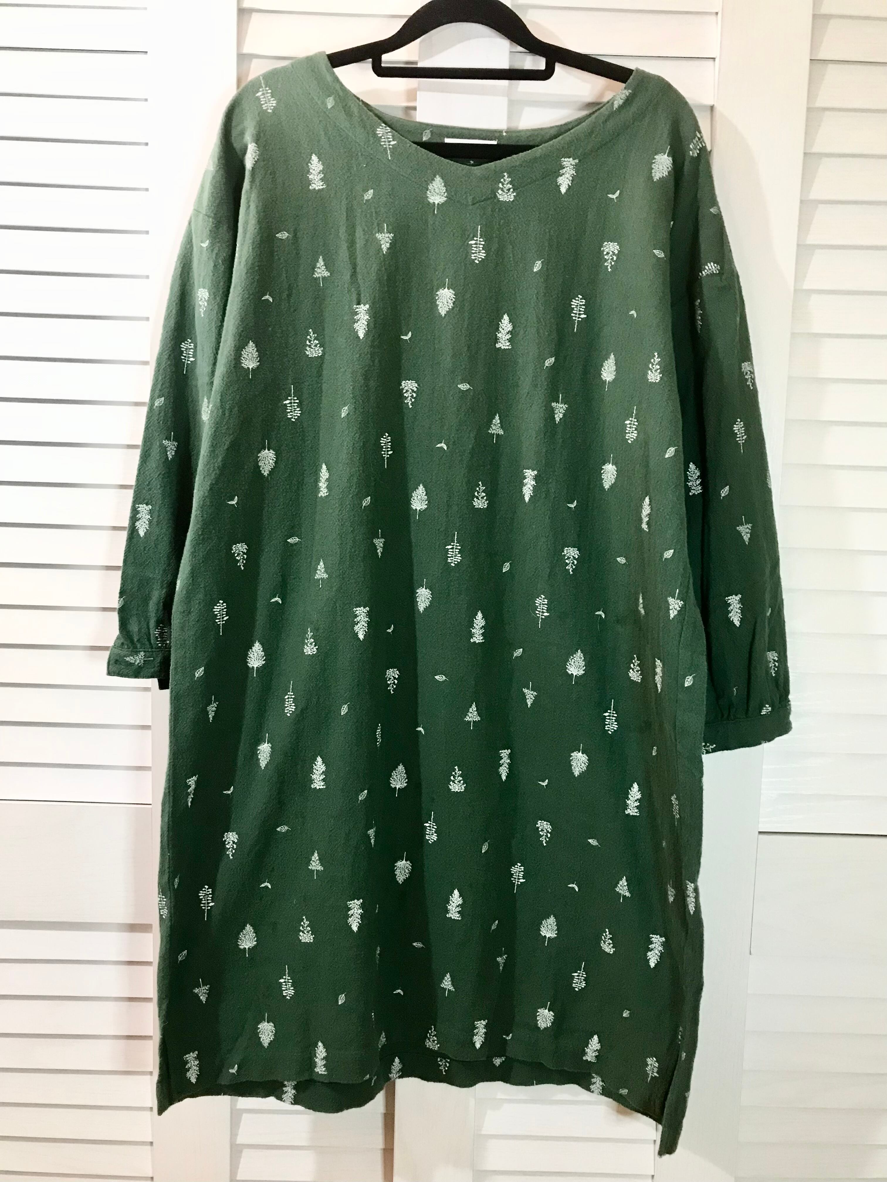 SELF+SERVISE 北欧プリントの起毛楊柳コットンワンピ モスグリーン | お洋服屋さん 『GOKKO』