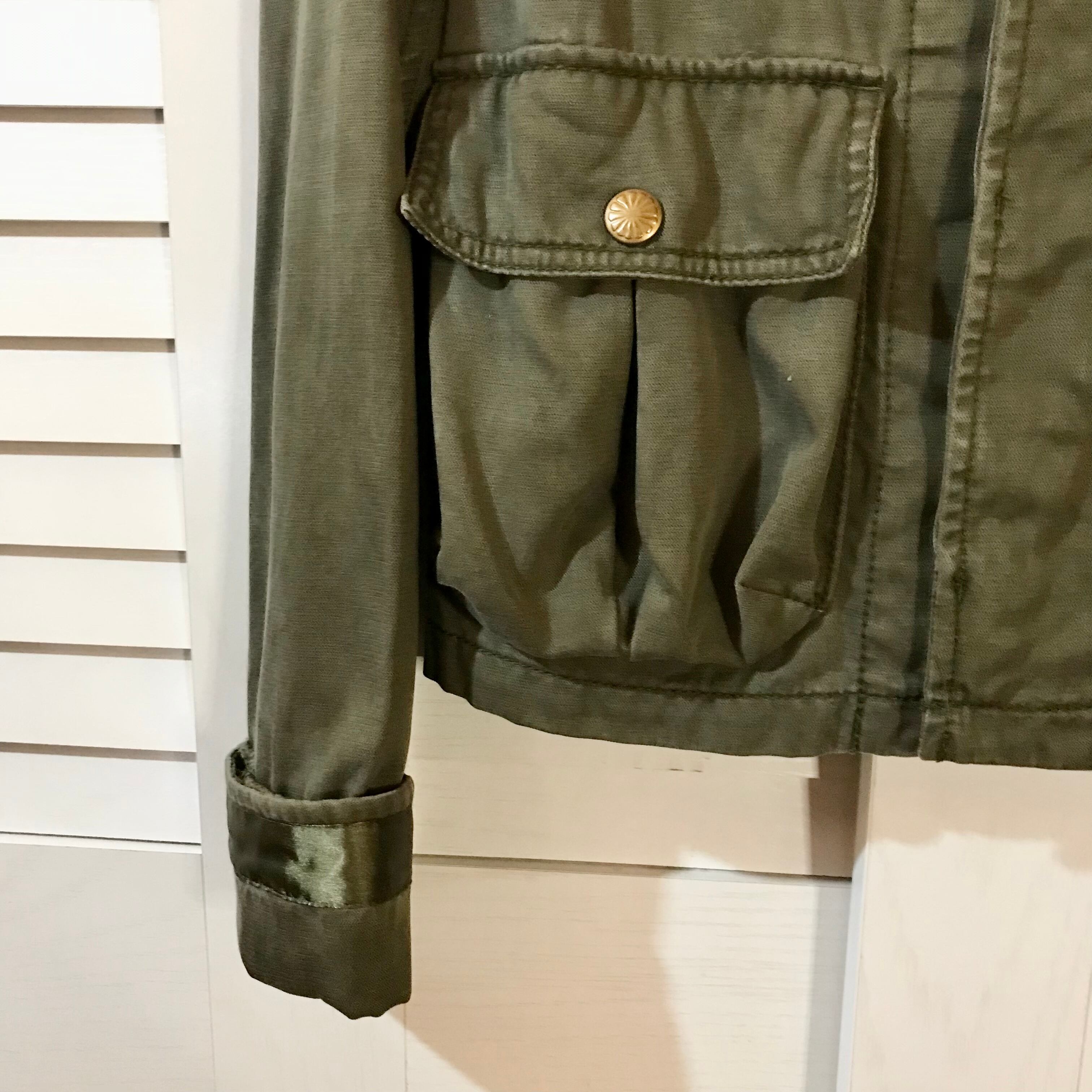 SLY USED加工 スパニッシュメッセージペイント ミリタリーシャツジャケット カーキ
