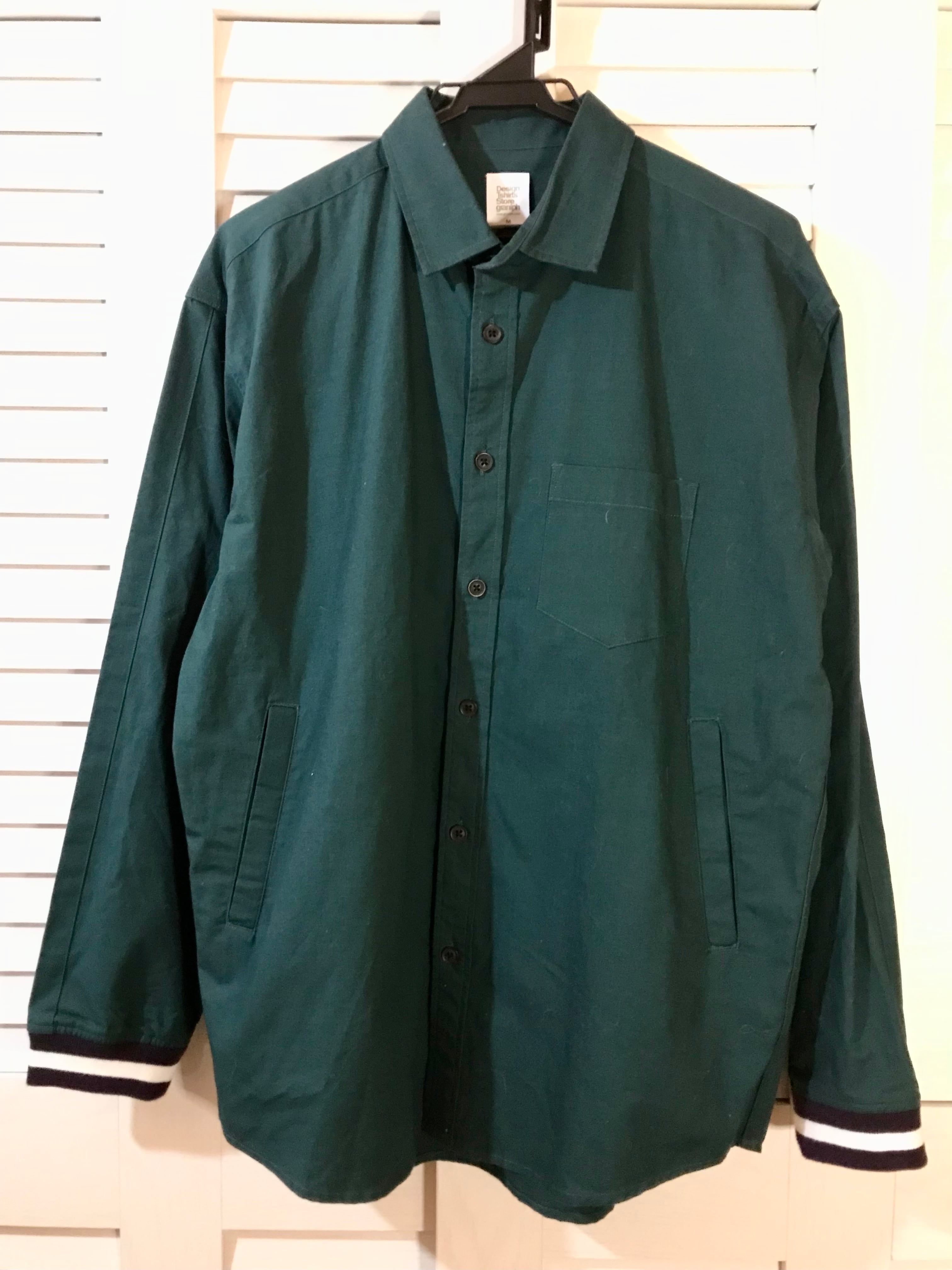 gramiph ラウンドスター刺繍 スポーツラインリブ シャツブルゾン モスグリーン