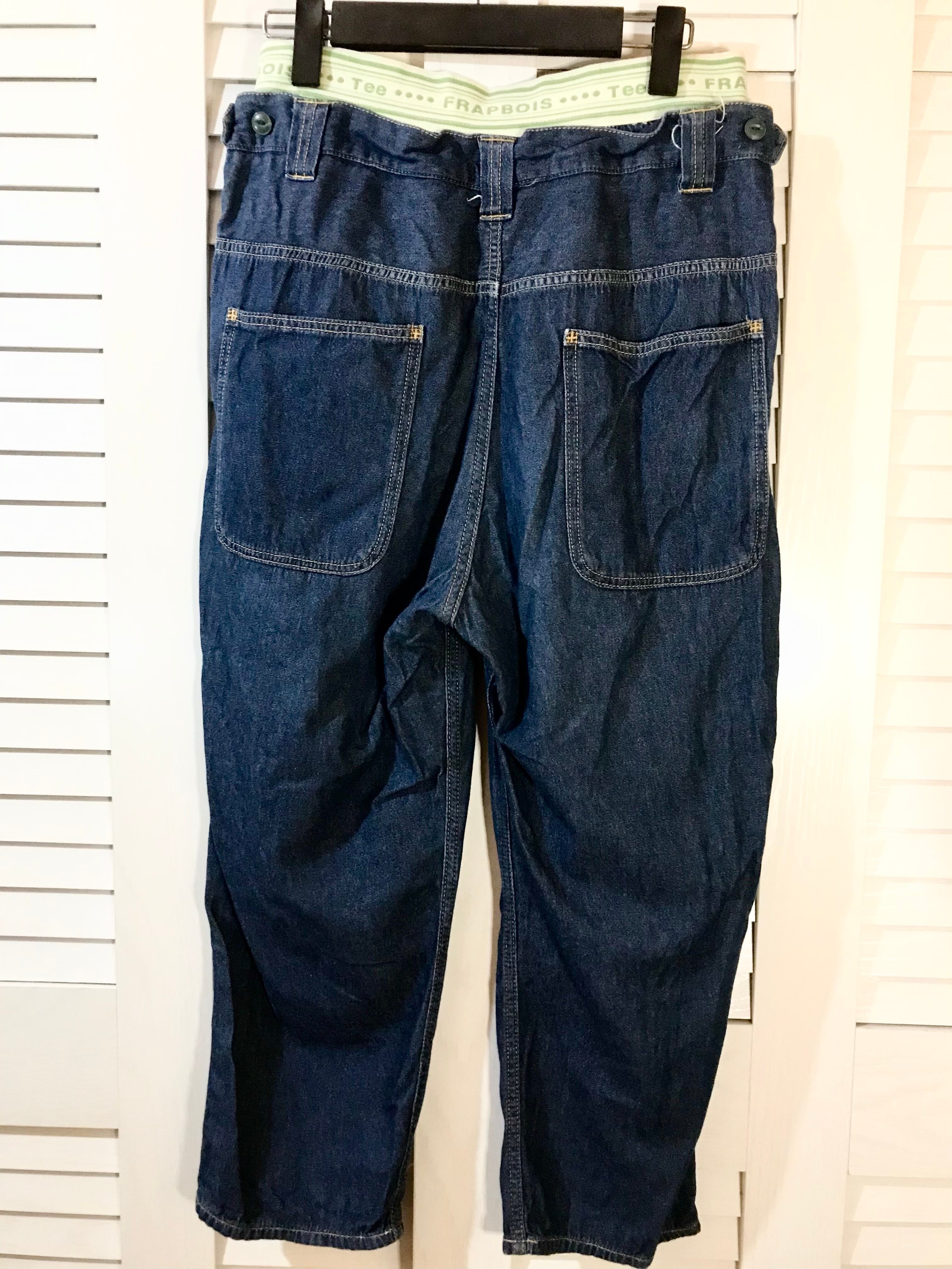 FRAPBOIS ラインロゴベルト デニムサルエルパンツ インディゴ×ライム【B品扱い】