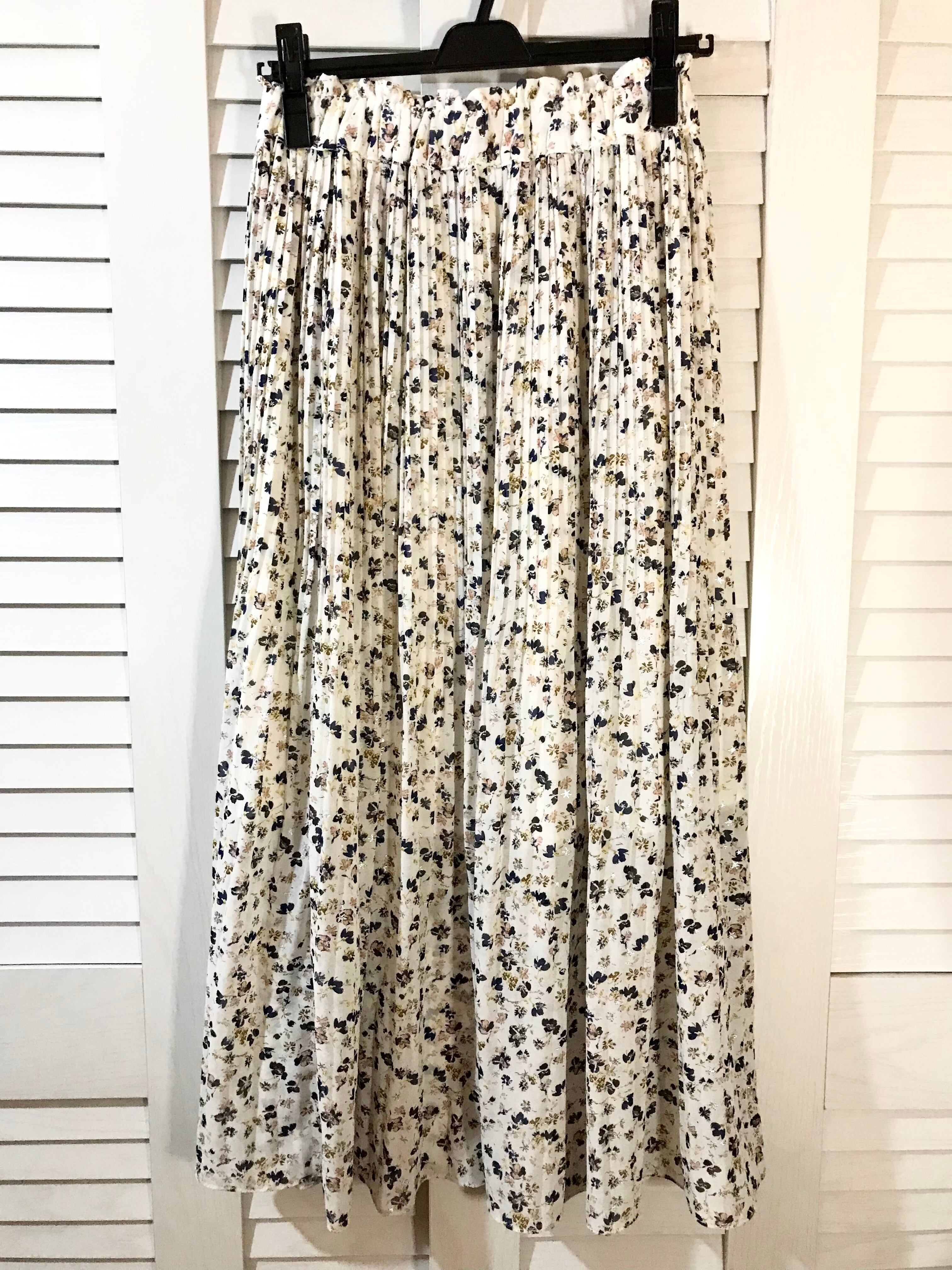 archives キラキラ★シルバー箔プリント小花柄プリーツスカート アイボリー