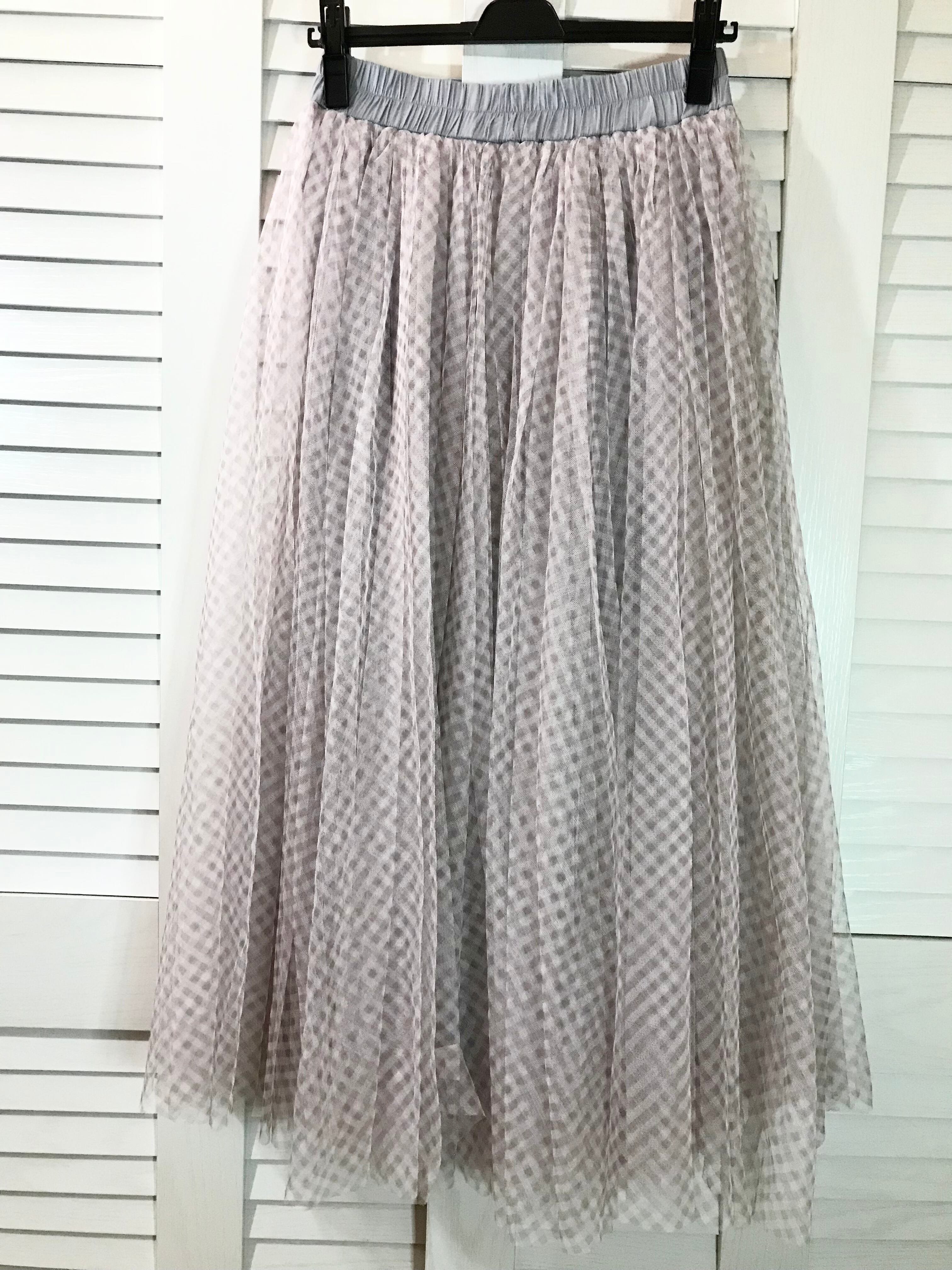 FURRY RATE ギンガムチェックボリュームチュールスカート ベージュ×グレー