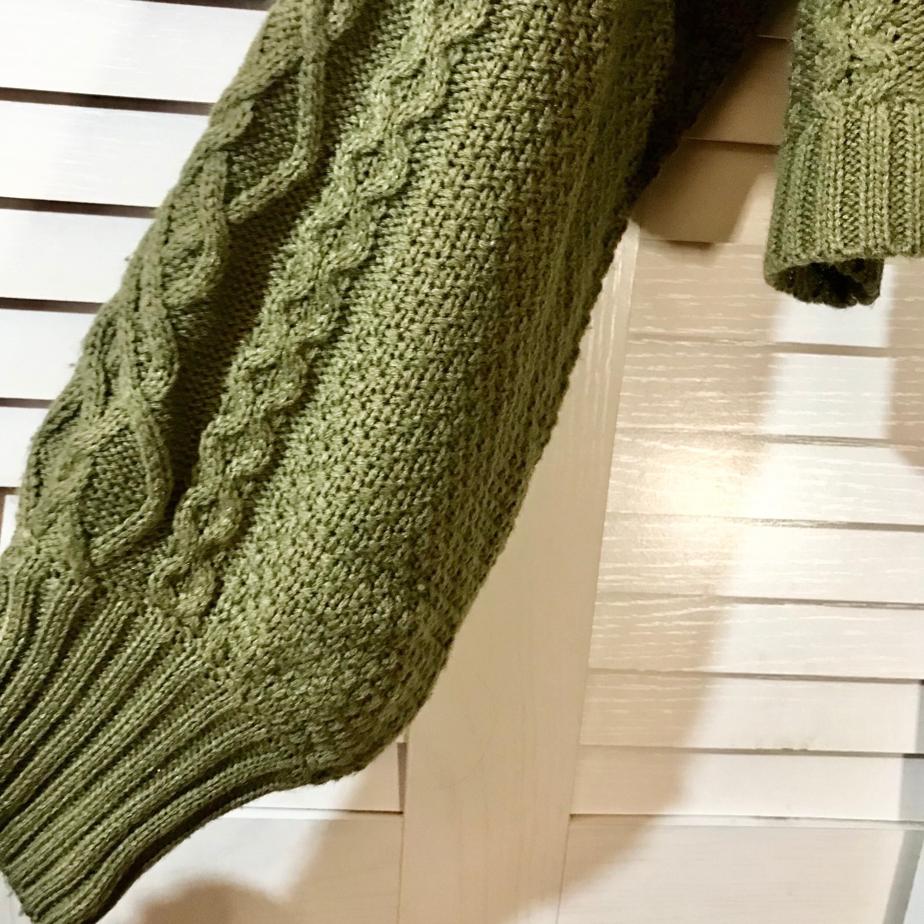 CORNERS ケーブル編みBIGスリーブVネックショート丈ニットセーター カーキ