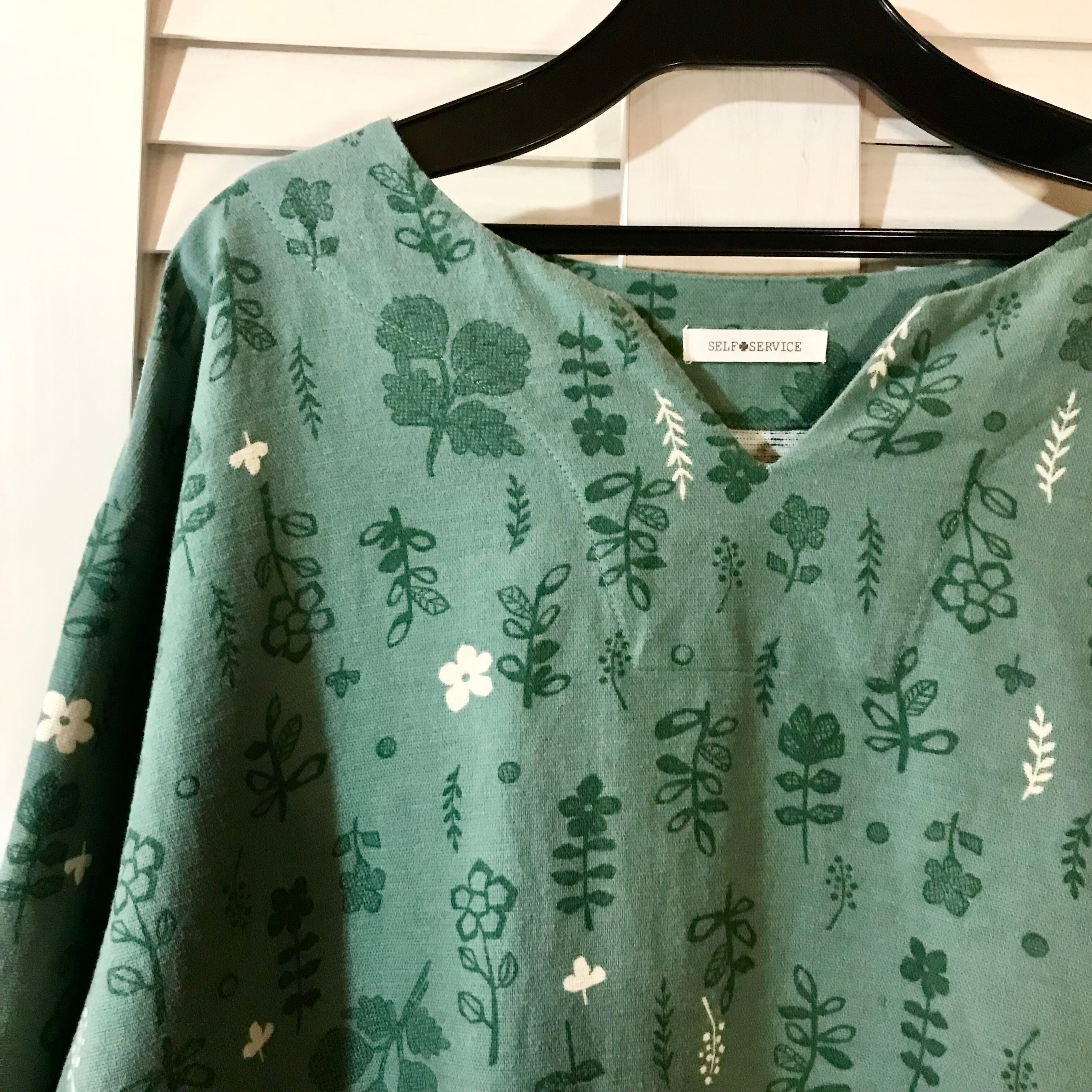 SELF+SERVICE 北欧ボタニカル柄コットン起毛ワンピ グリーン | お洋服屋さん 『GOKKO』