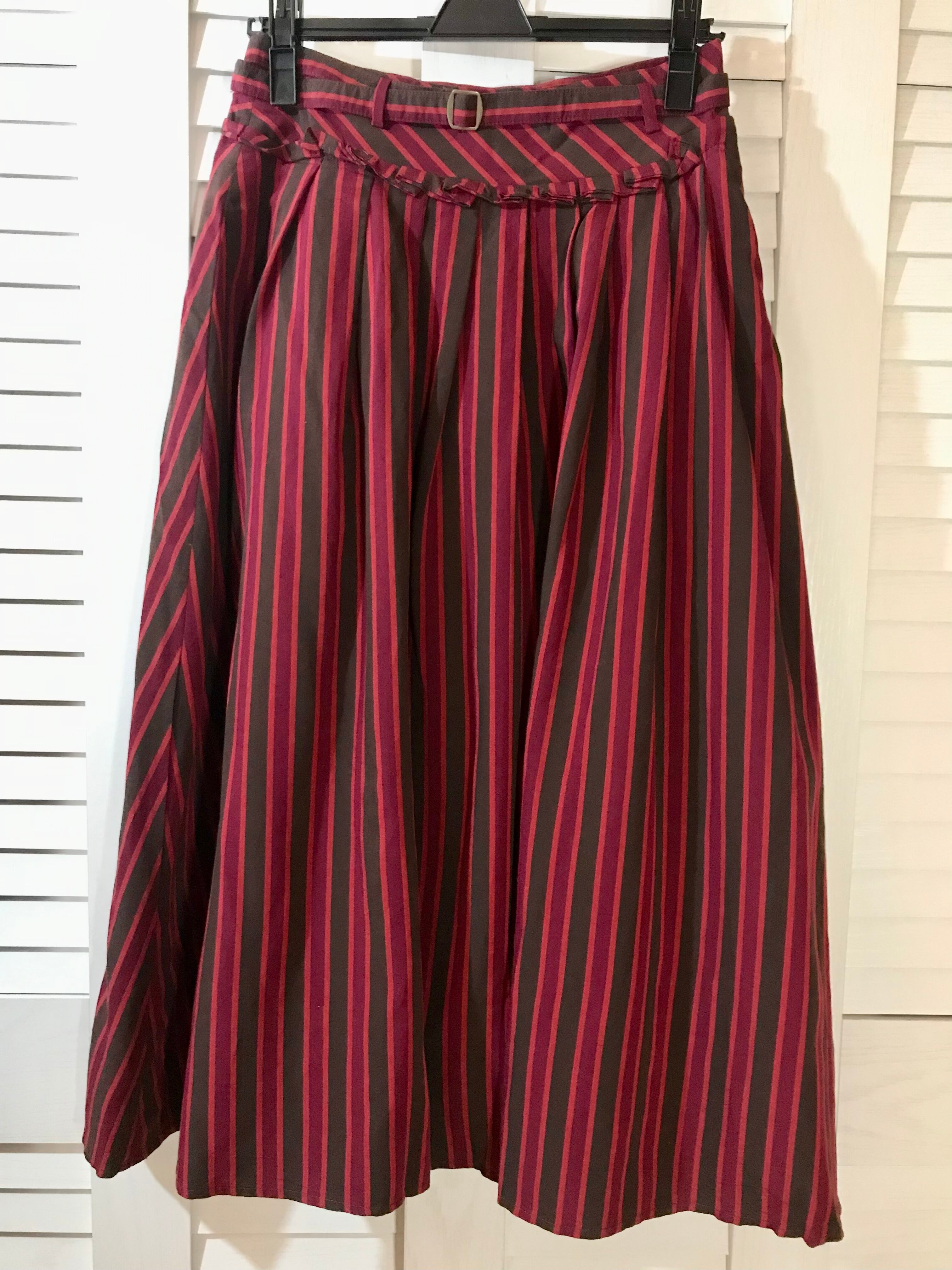 Simplicite 共布ベルト付き ストライプフレアースカート レッド系