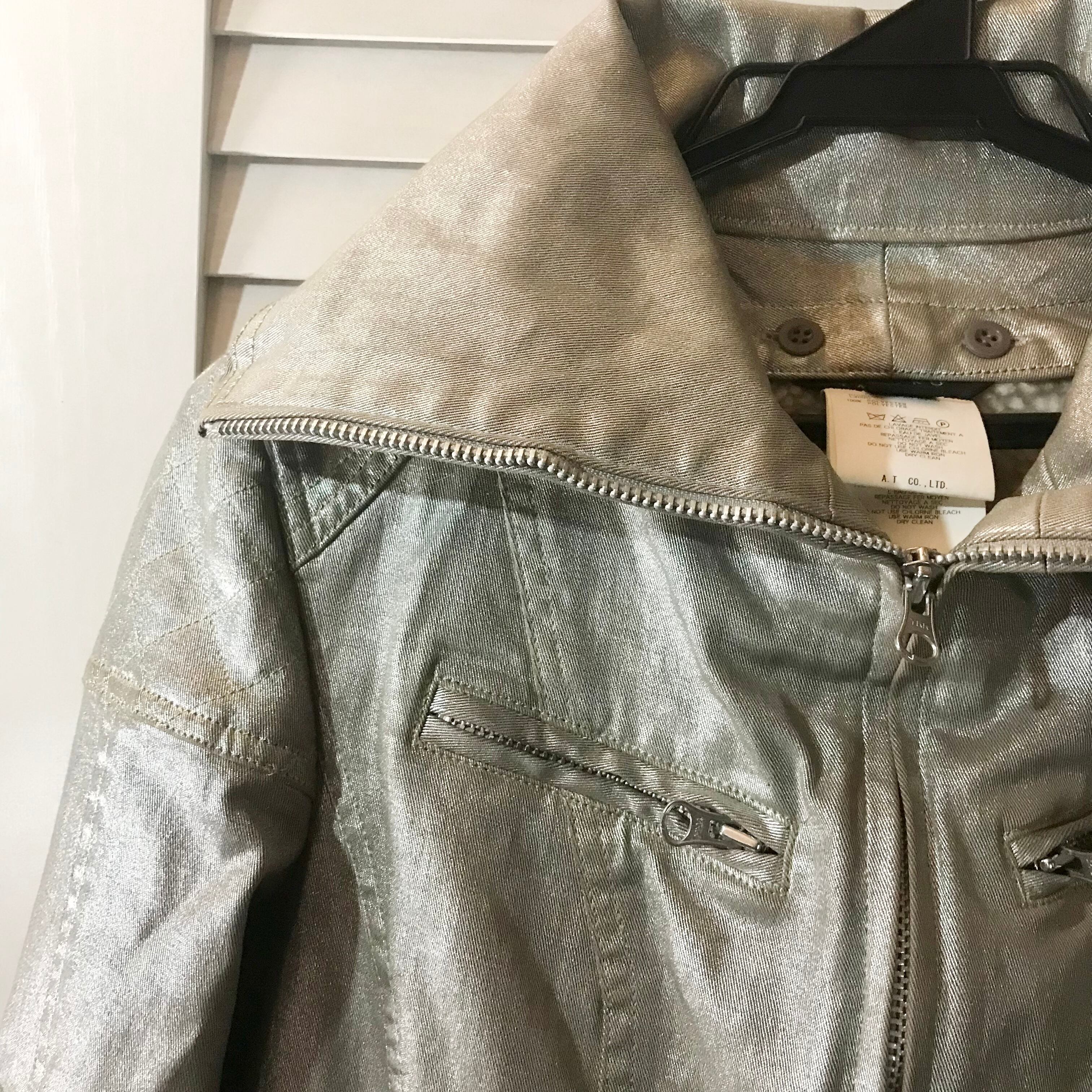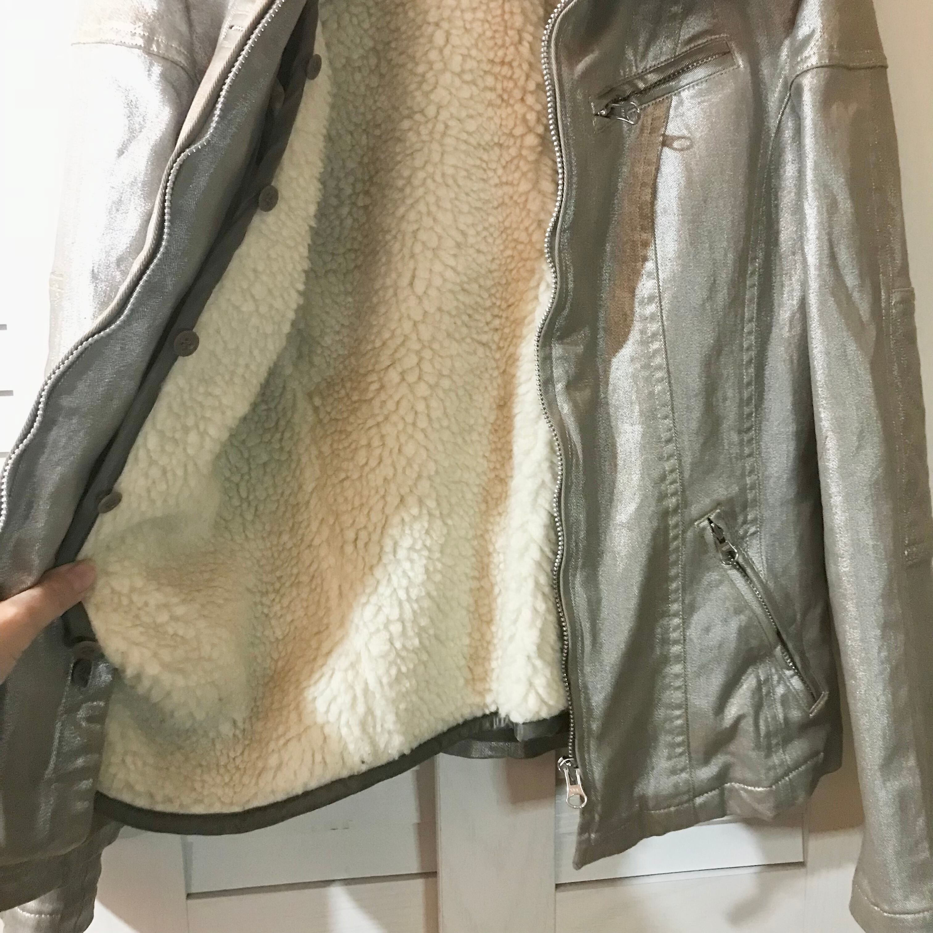 ATSURO TAYAMA メタリックシルバーライダースジャケット ボアライナー付き