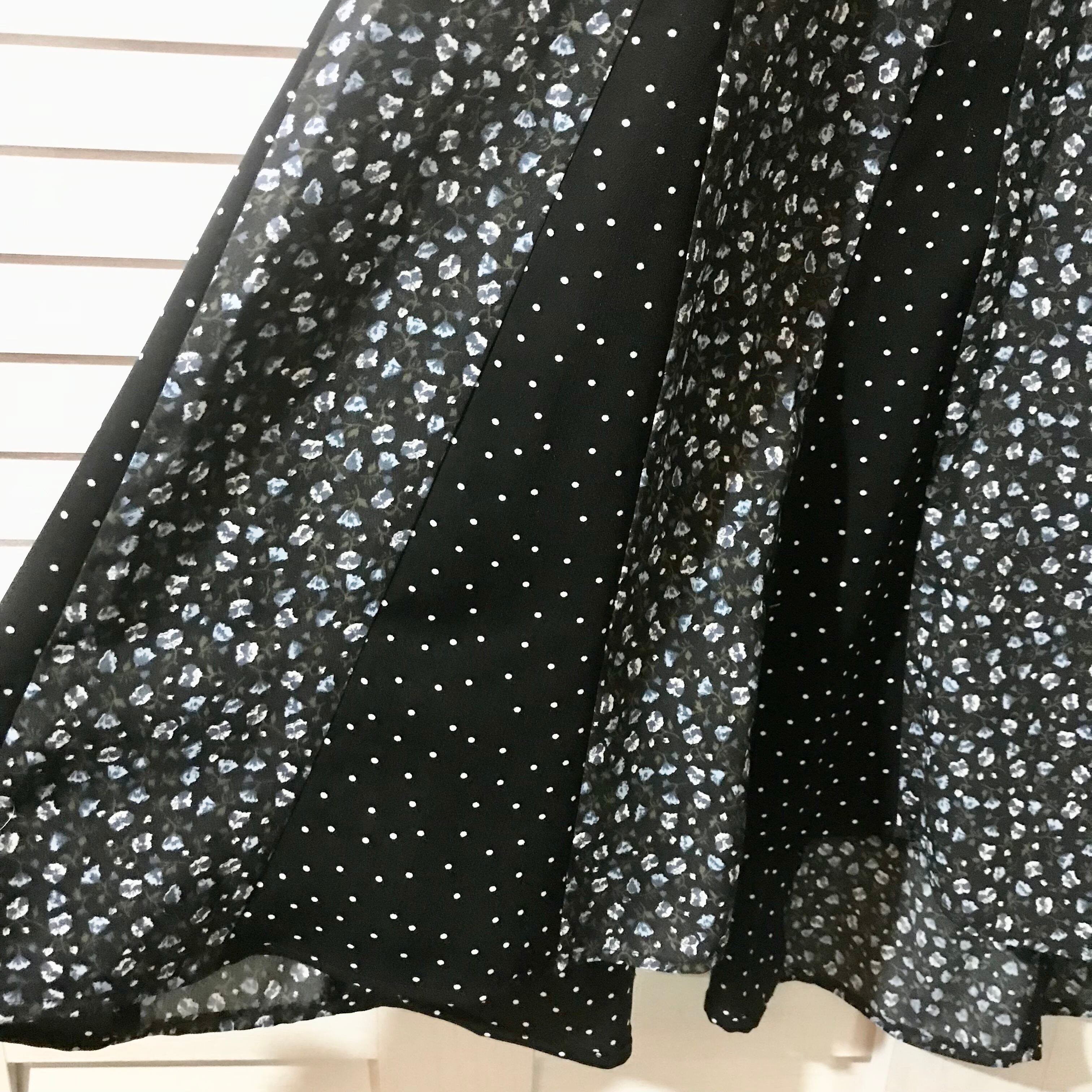 URBAN RESEARCH ドット×小花柄 マーメイドフレアースカート ネイビー×ブラック