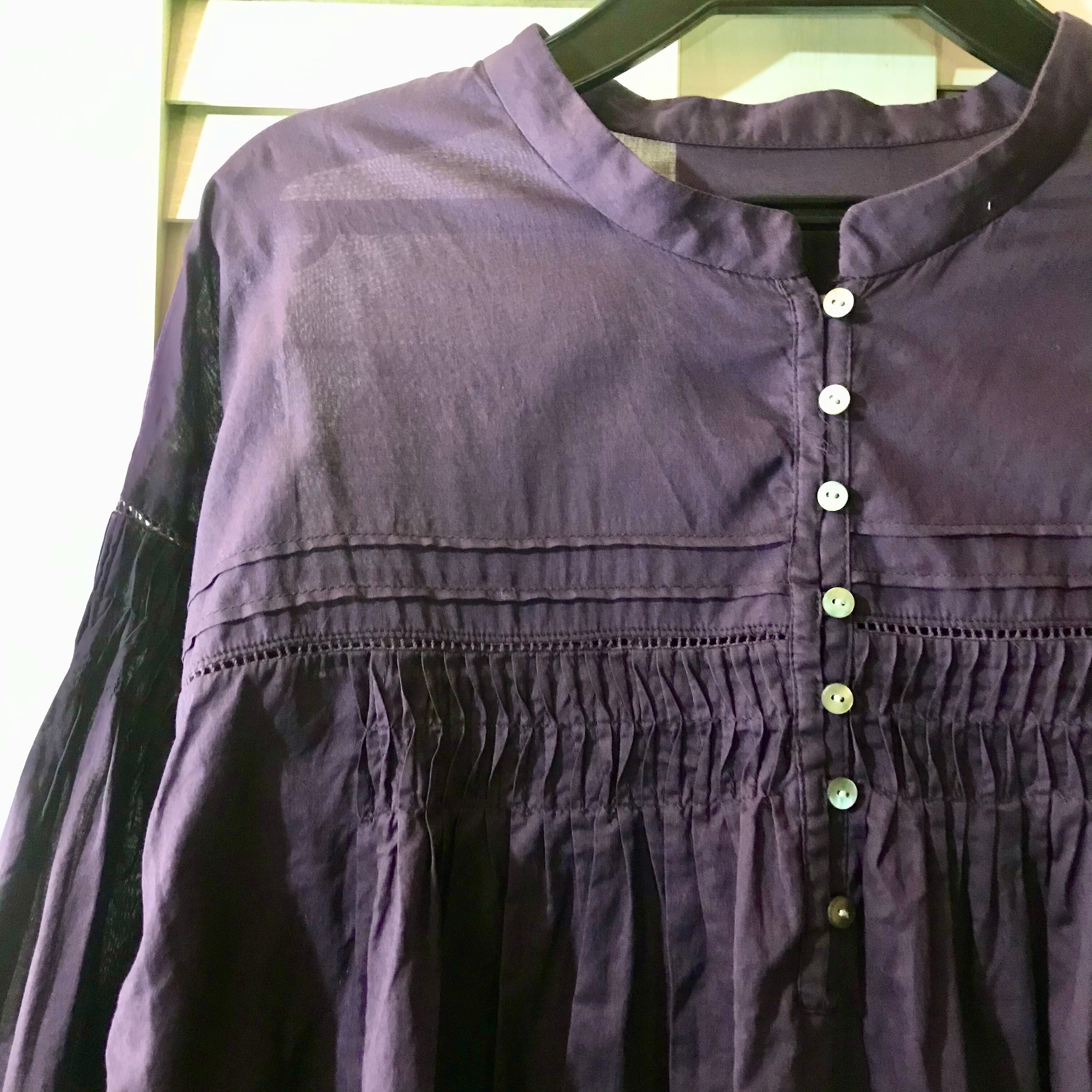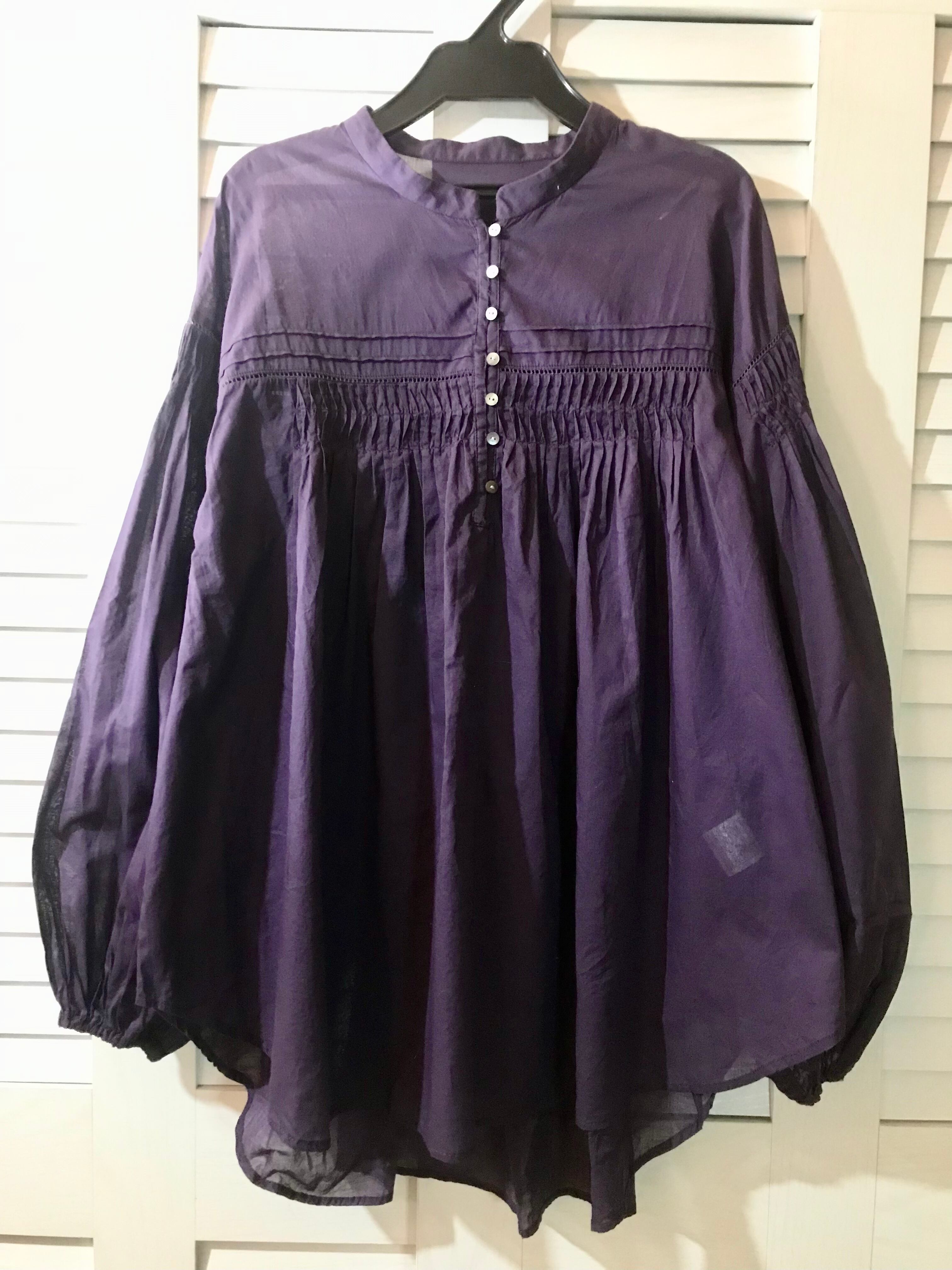 JEANASIS 変形ピンタック 綿ローンのボリュームスリーブブラウスパープル