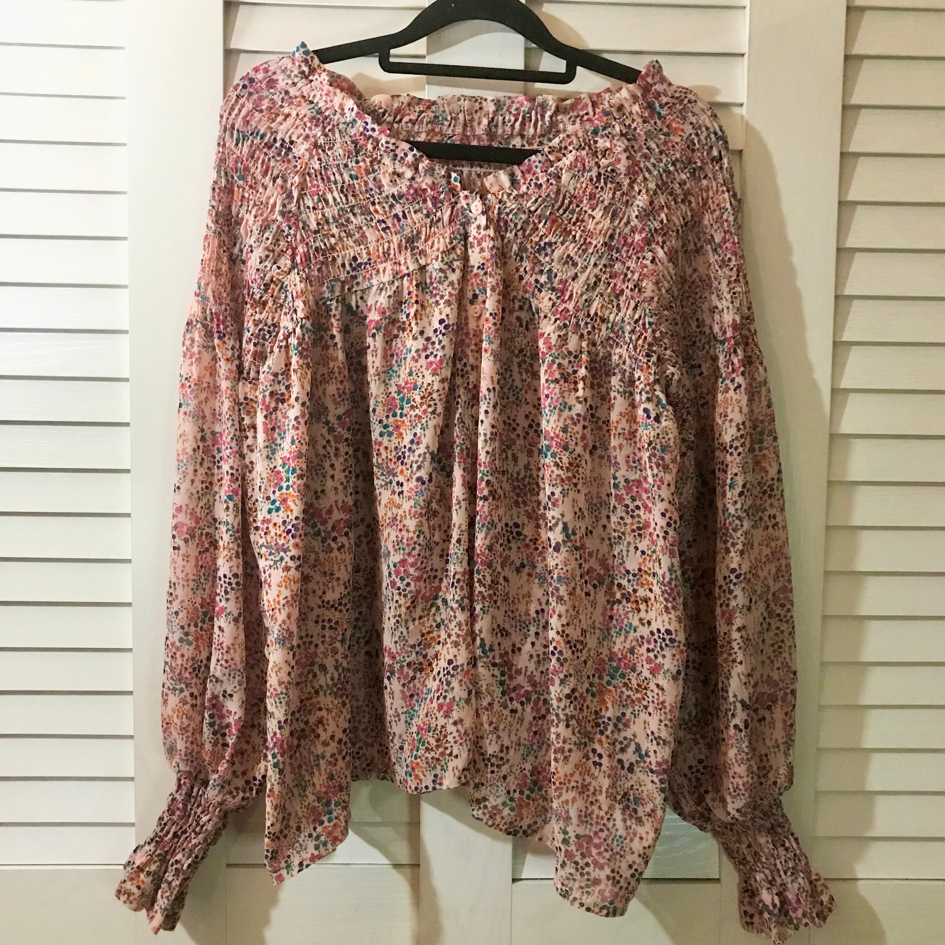 kastane 小花柄シャーリングネックデザインシアーブラウスサーモンピンク | お洋服屋さん 『GOKKO』