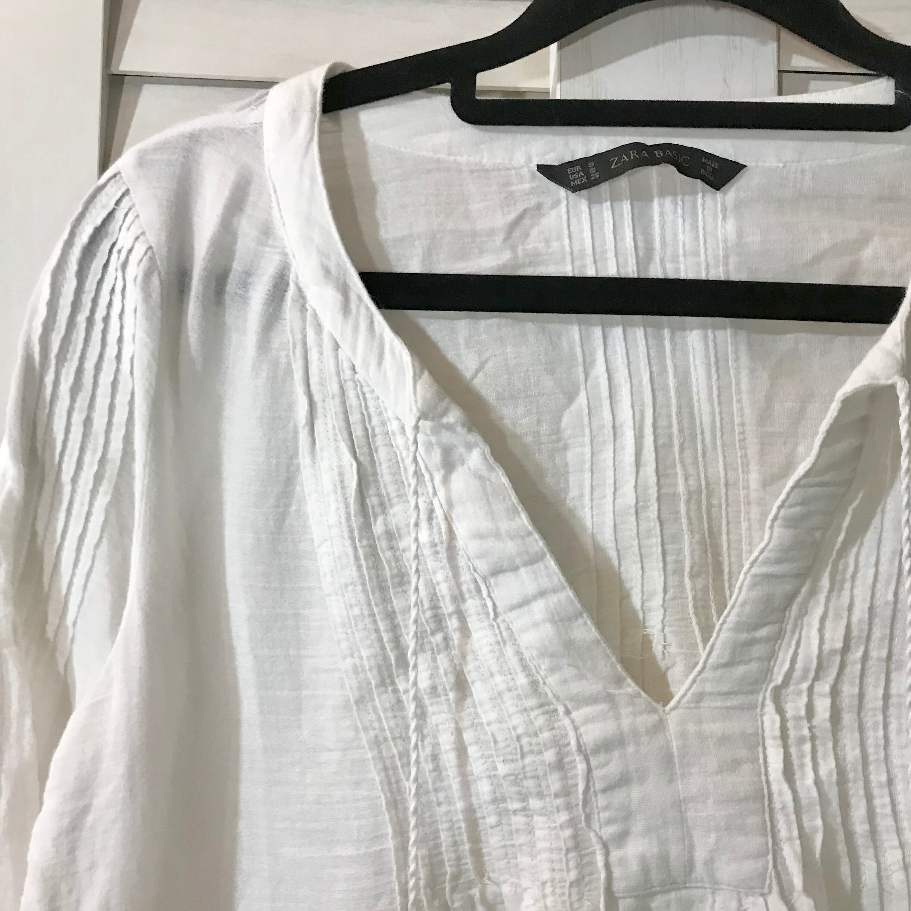 ZARA ピンタック&カッティングレースのショート丈 綿ローンブラウス オフホワイト | お洋服屋さん 『GOKKO』