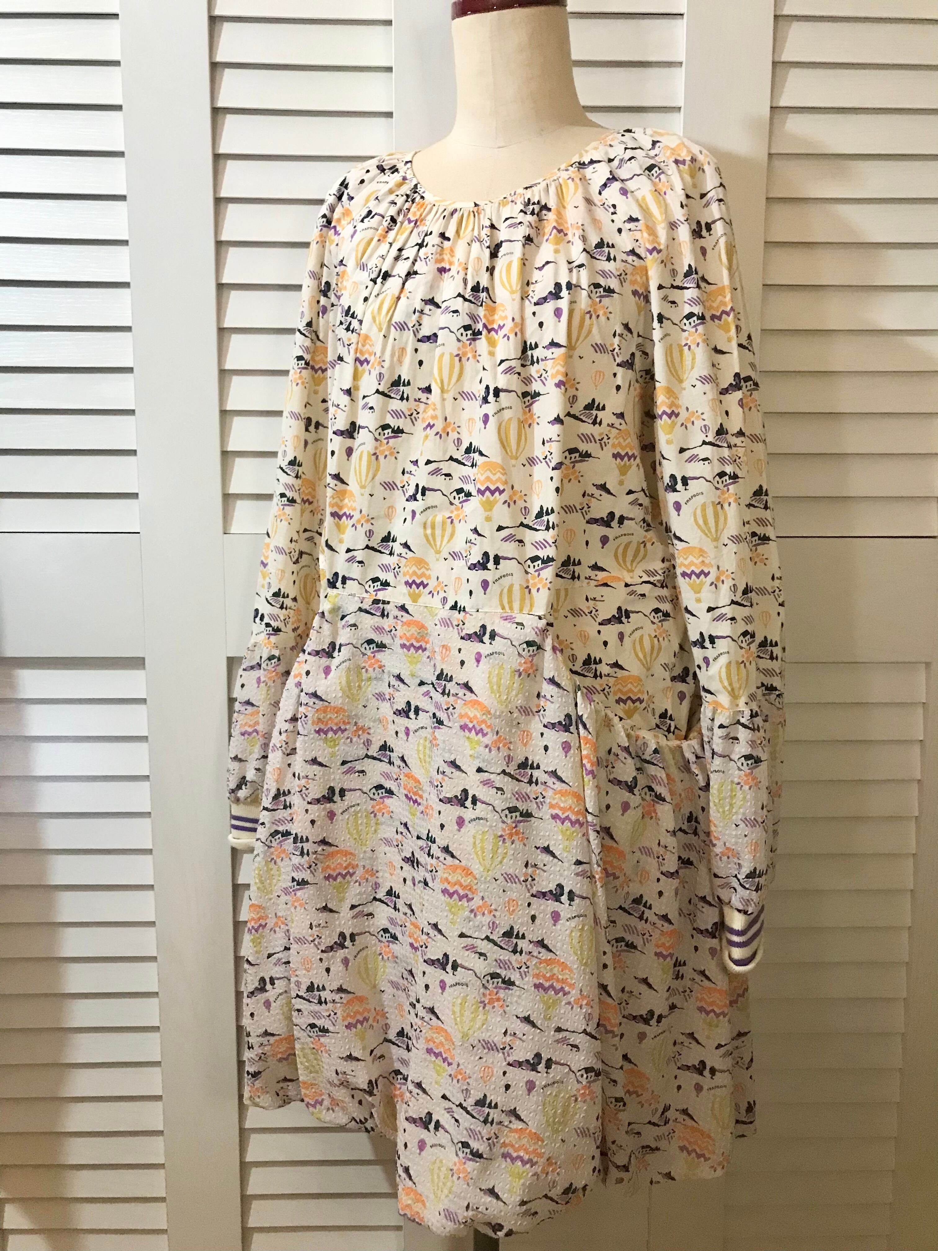 FRAPBOIS 定価3万!バルーン柄コットン&ジョーゼットコンビ バルーンワンピ イエロー