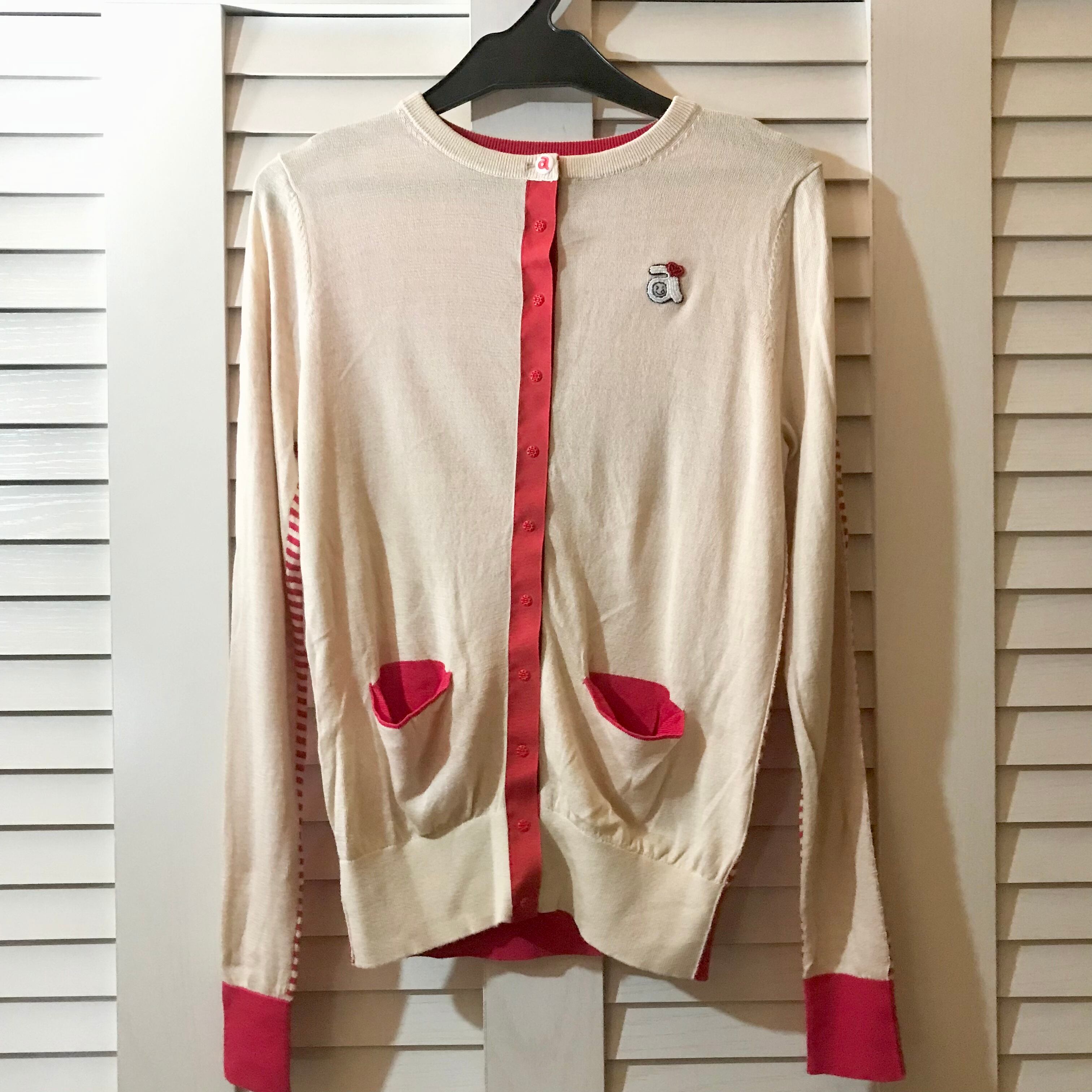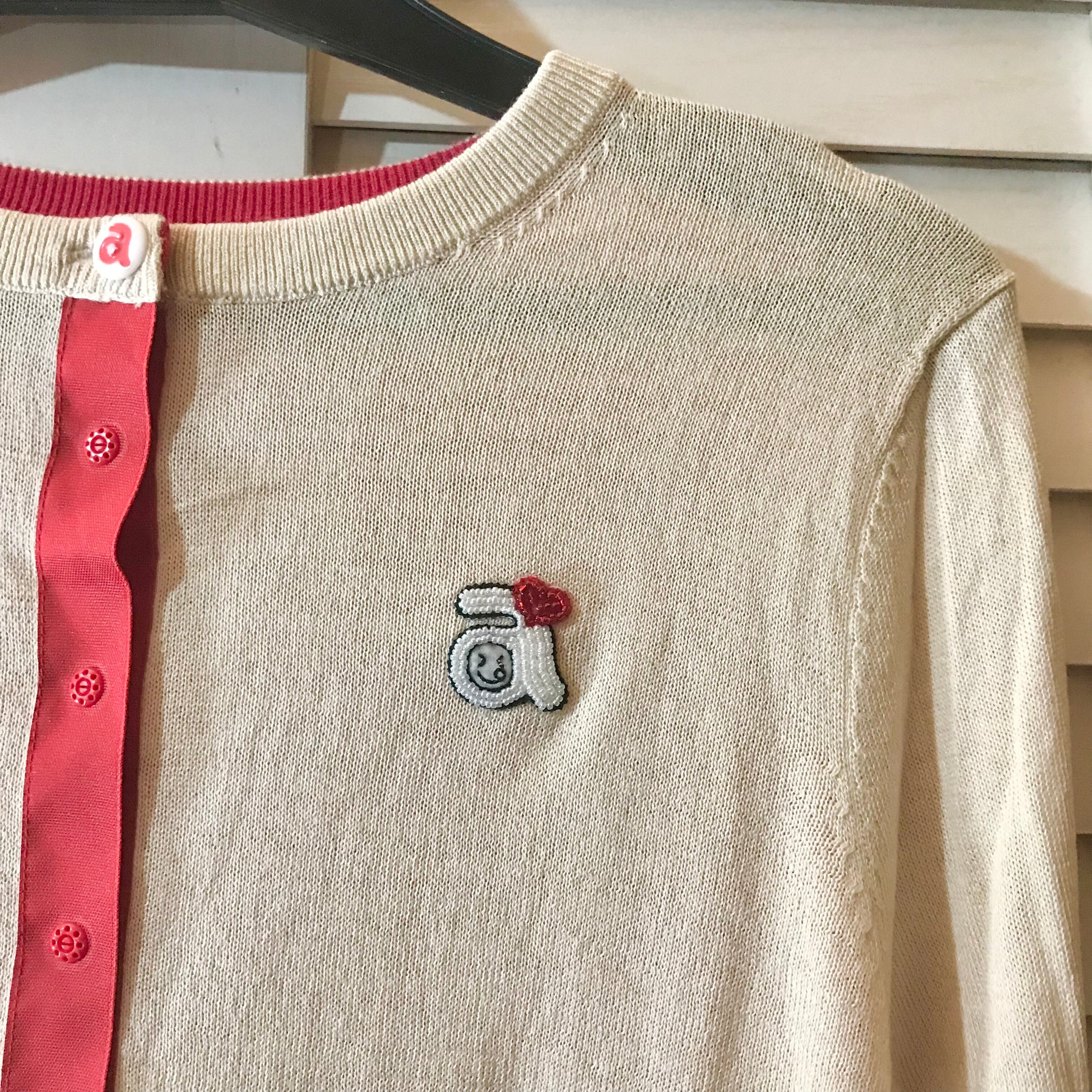 A ビーズロゴ刺繍 バックボーダーカーデ ライトベージュ