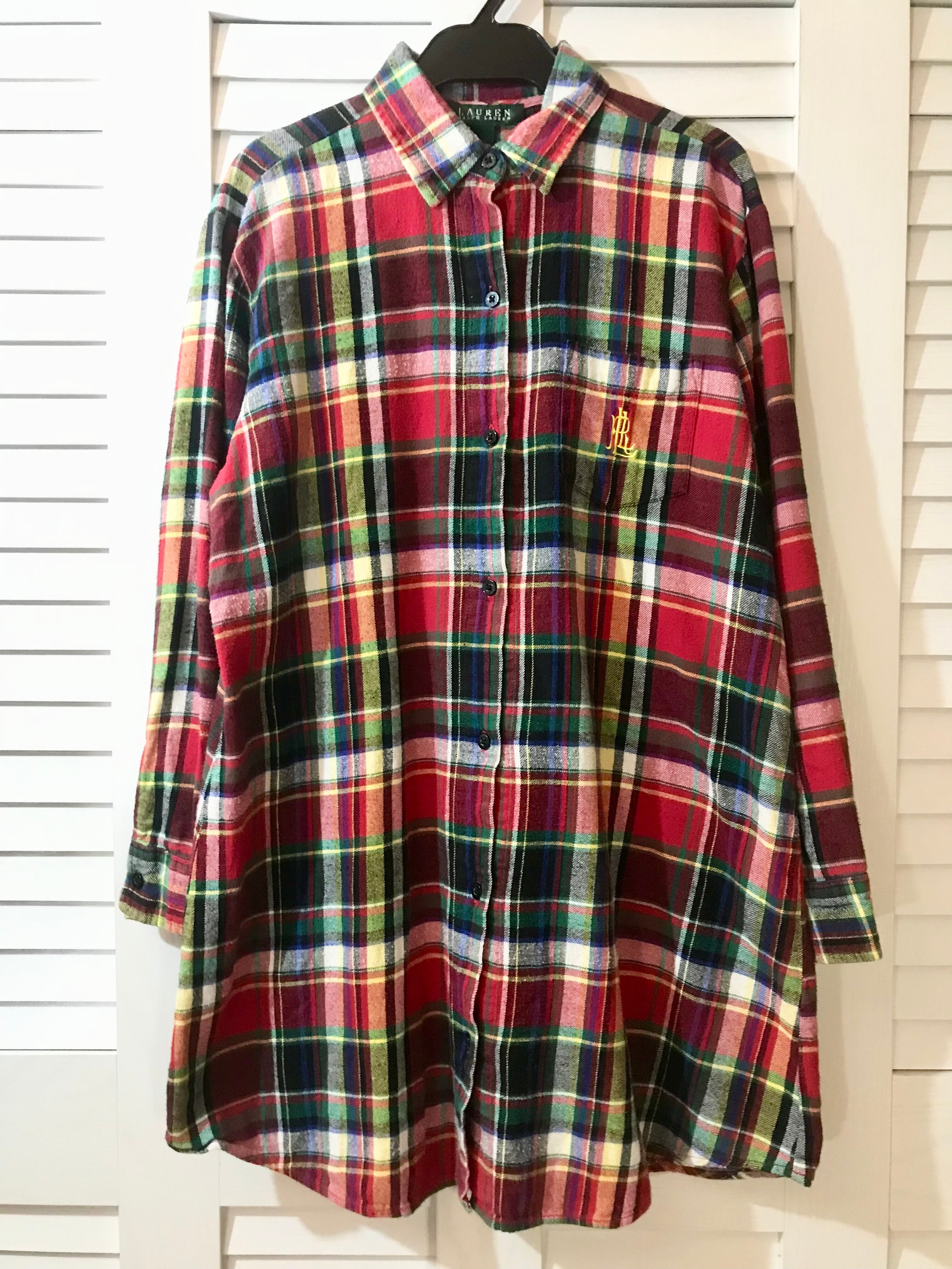 RALPH LAUREN インポートモデル ロゴマーク刺繍入り タータンチェックシャツワンピ レッド