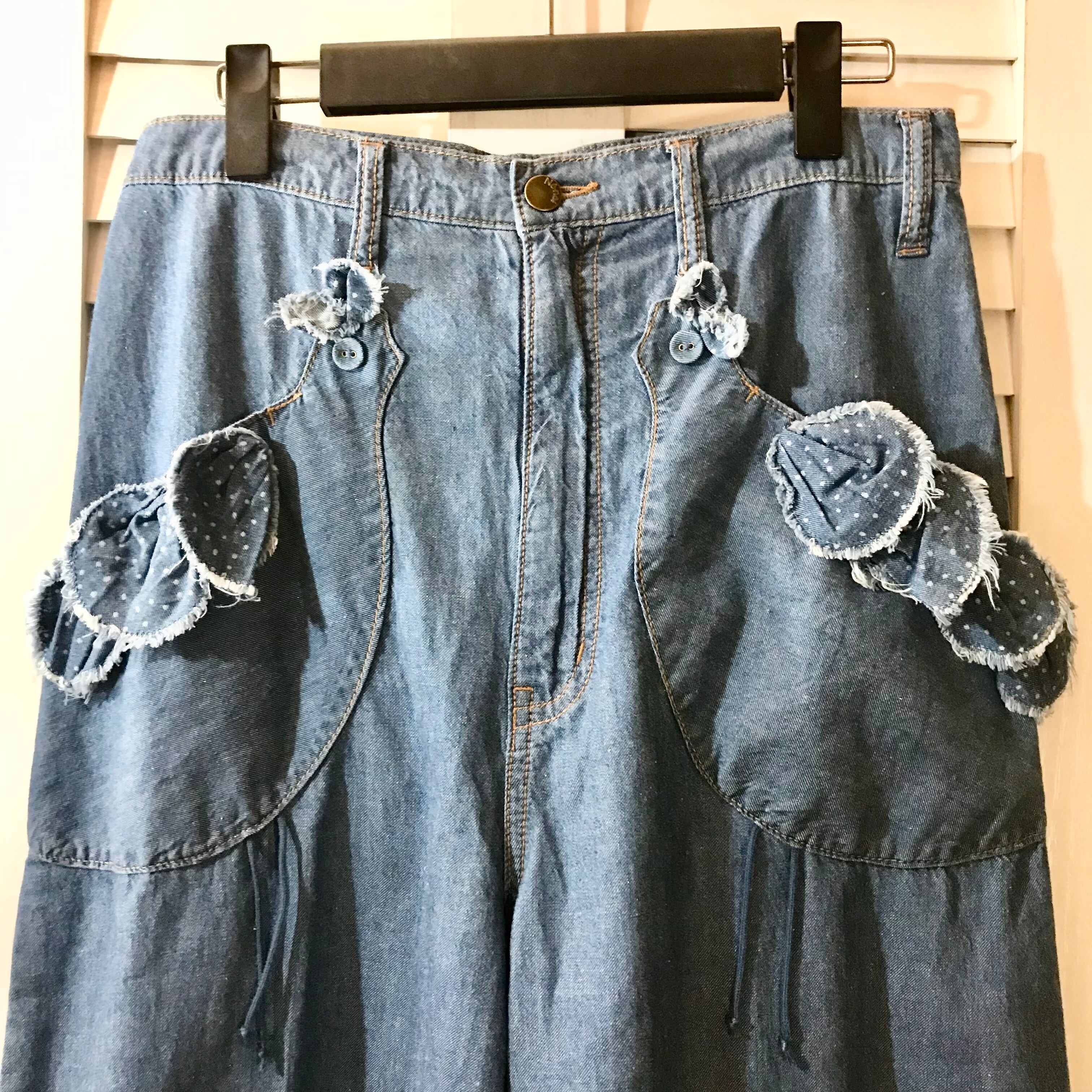 Ne-net ホロホロ鳥パッチポケット クロップドデニムワイドパンツ ライトブルー