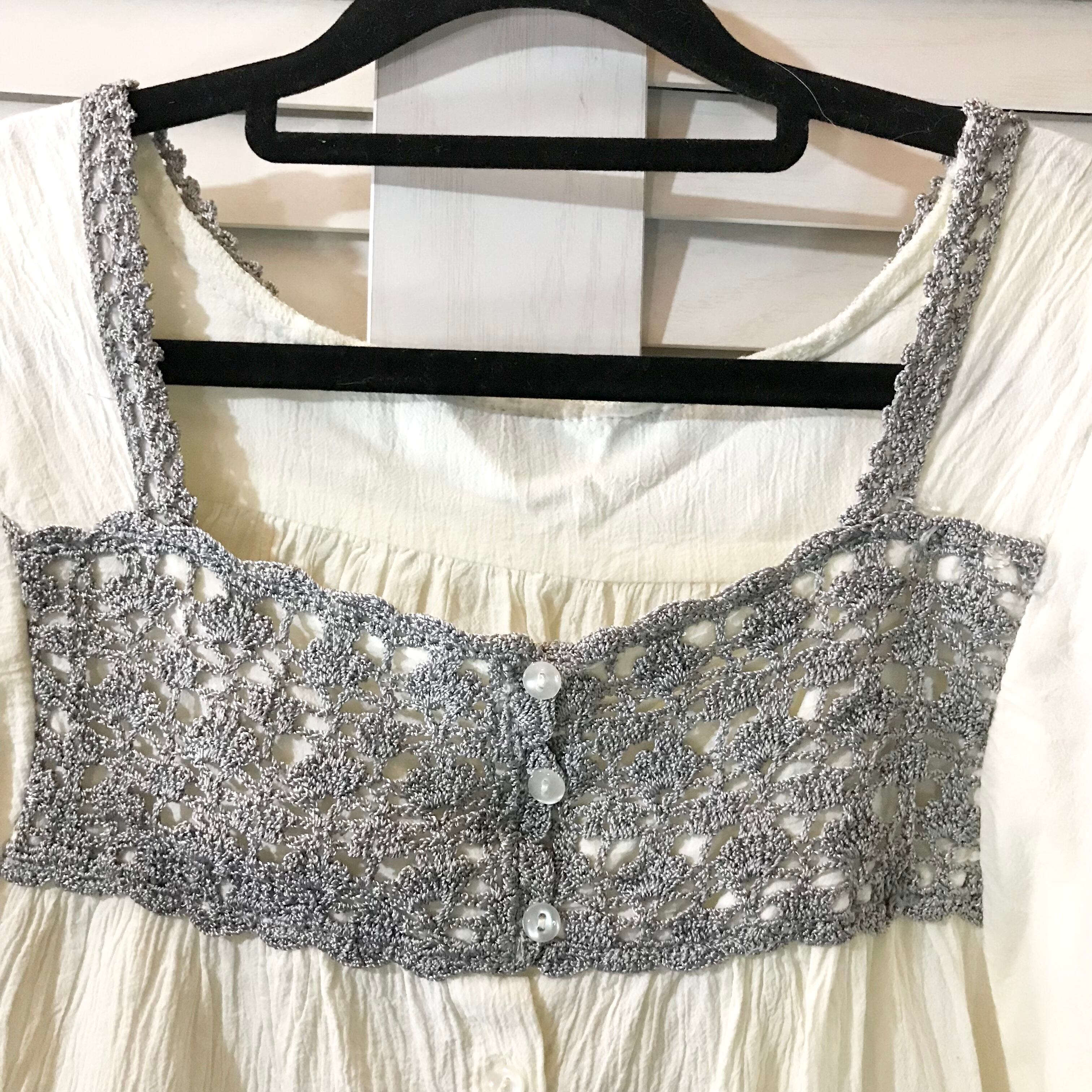 somari imagination カギ編みレースヨークのバタフライスリーブチュニックブラウス アイボリー