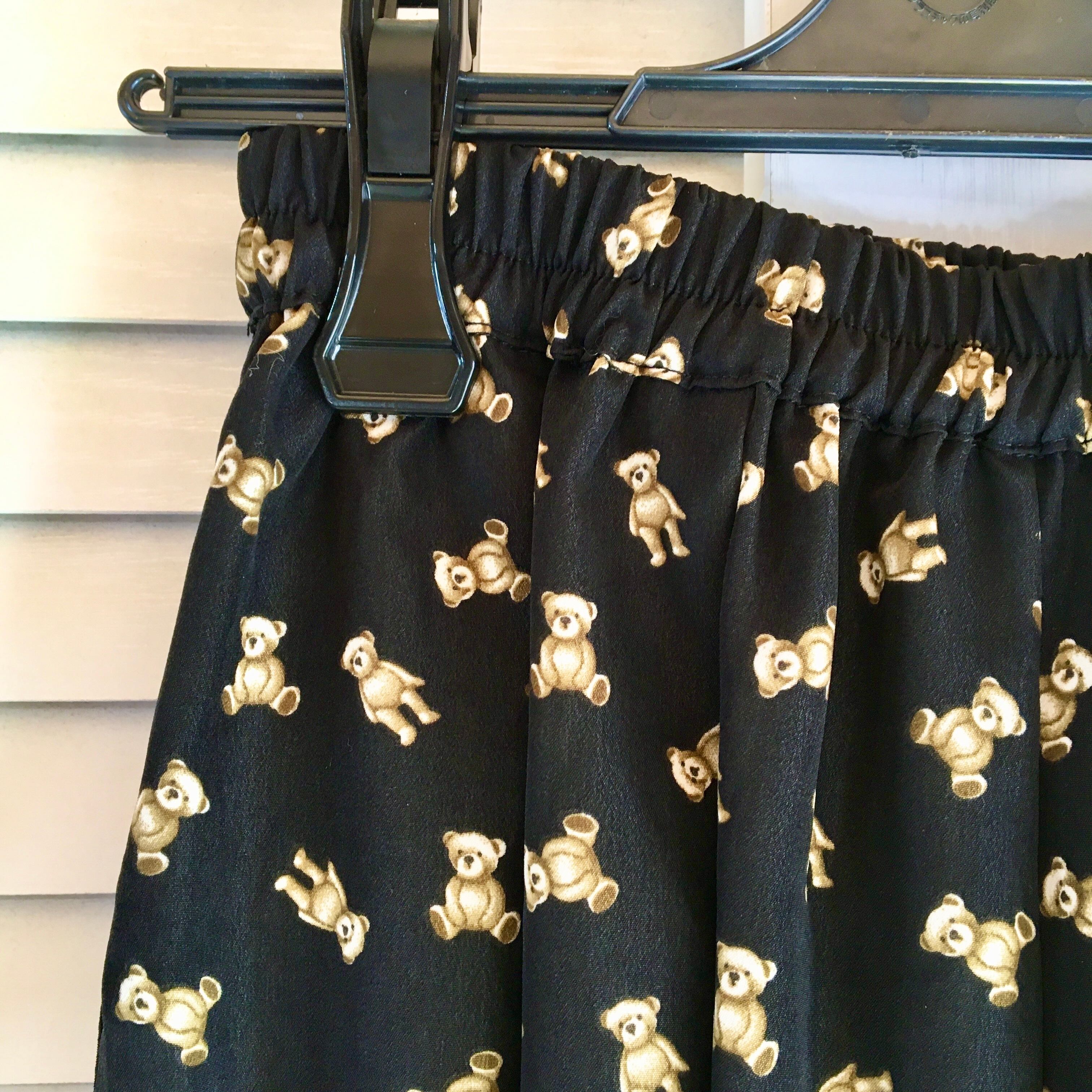 MIMI MEMETE テディベア柄サテンワイドパン ブラック
