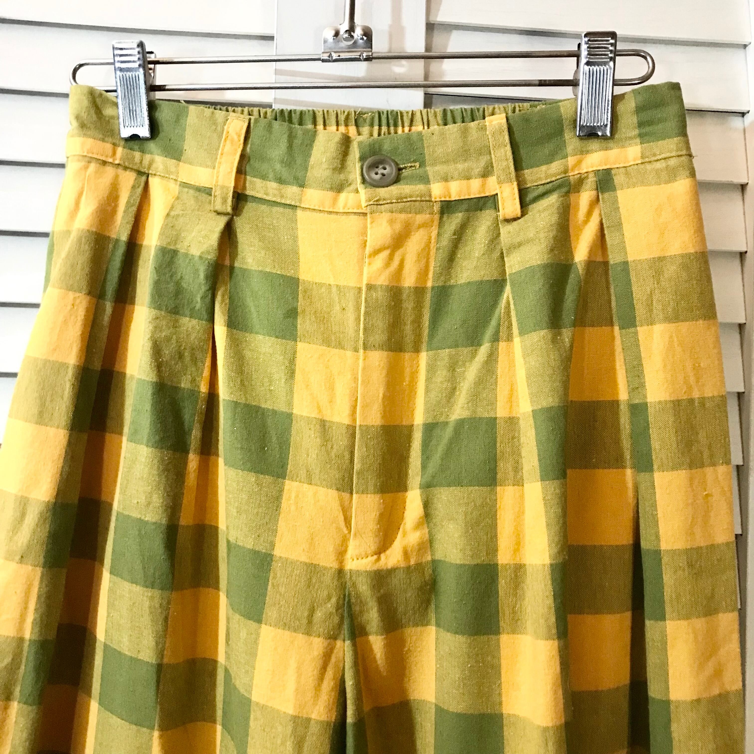 merlot BIGチェック ワンタックワイドパンツ イエロー×キミドリ
