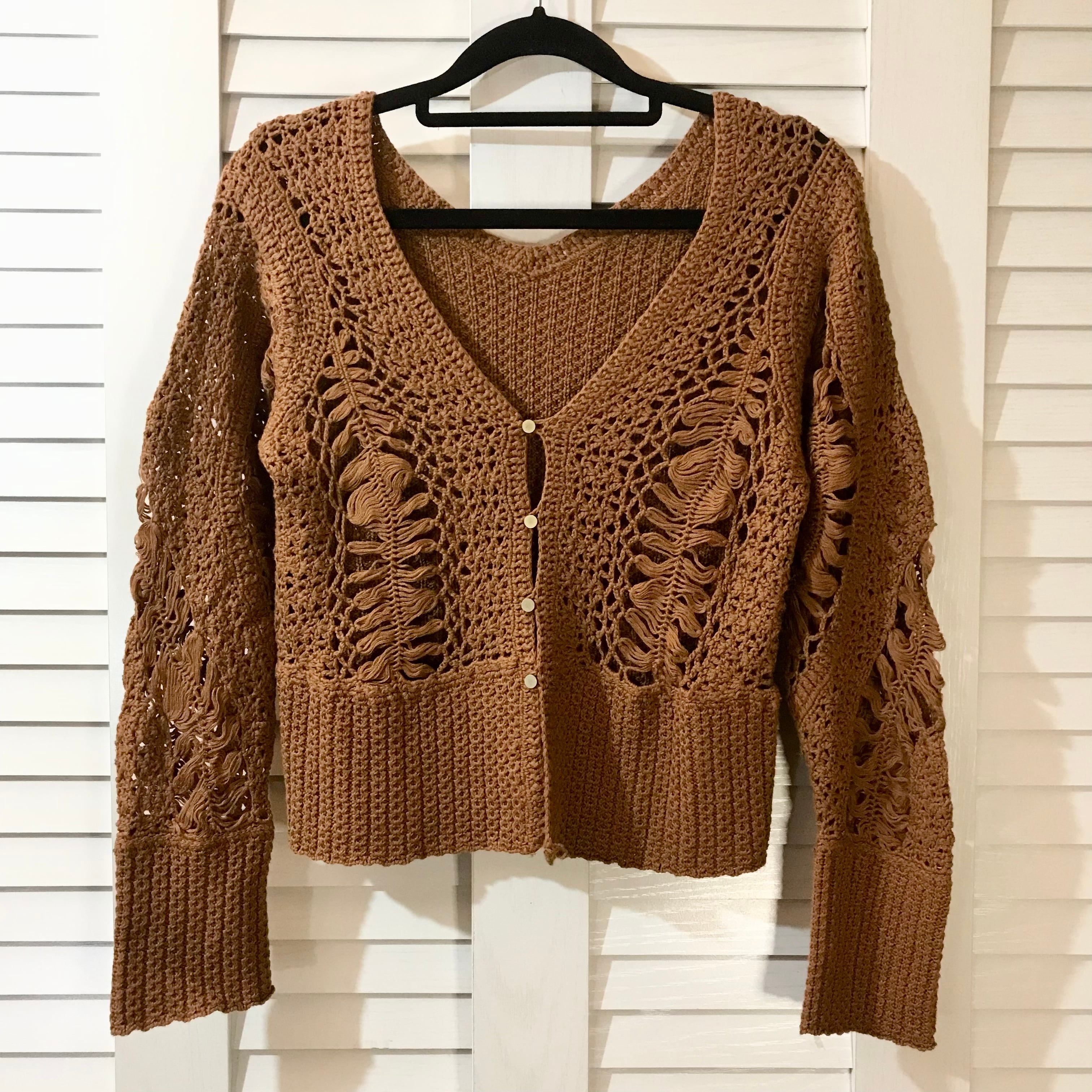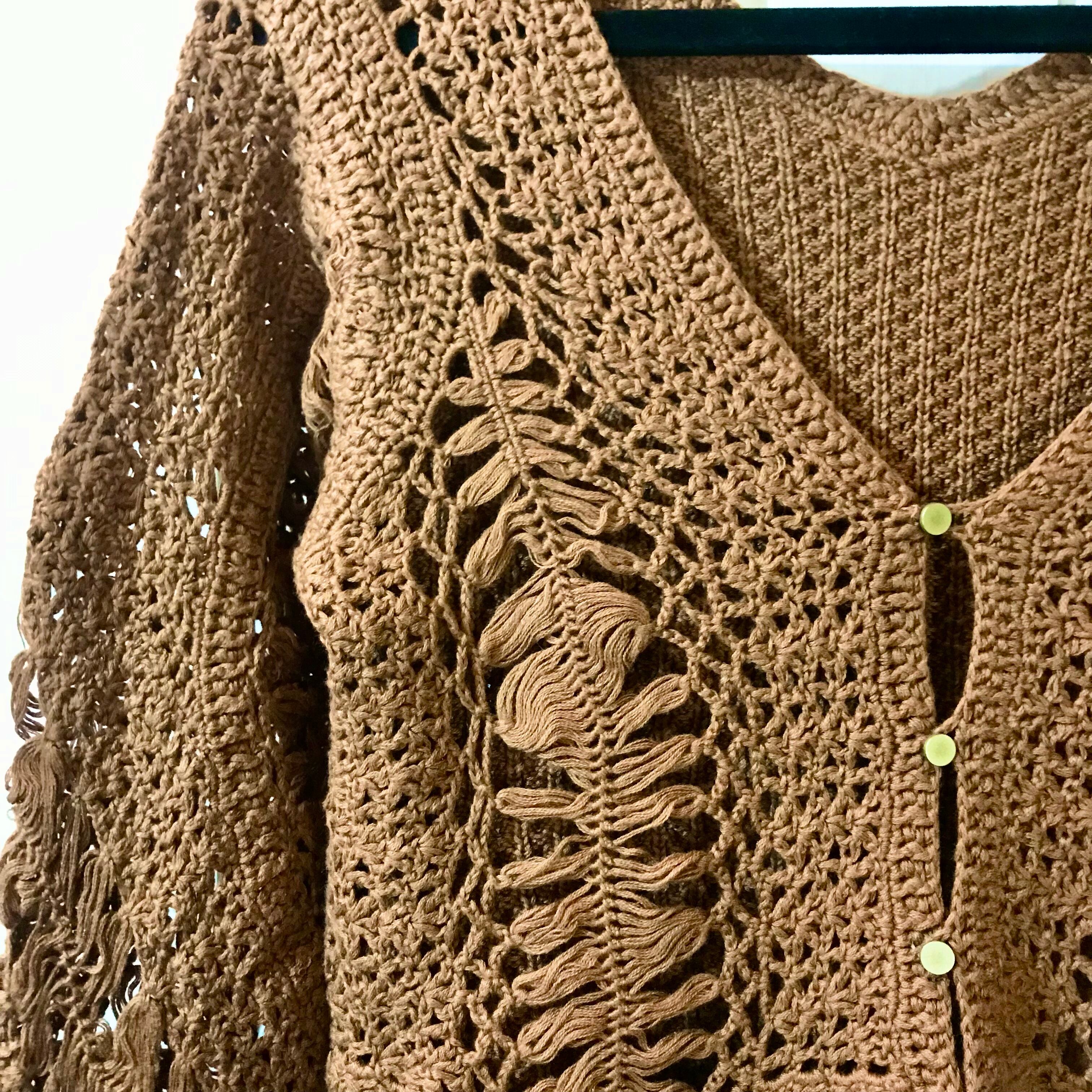 nitca 透かし編み変形デザイン太スカラップ ショート丈カーデ キャメルブラウン | お洋服屋さん 『GOKKO』