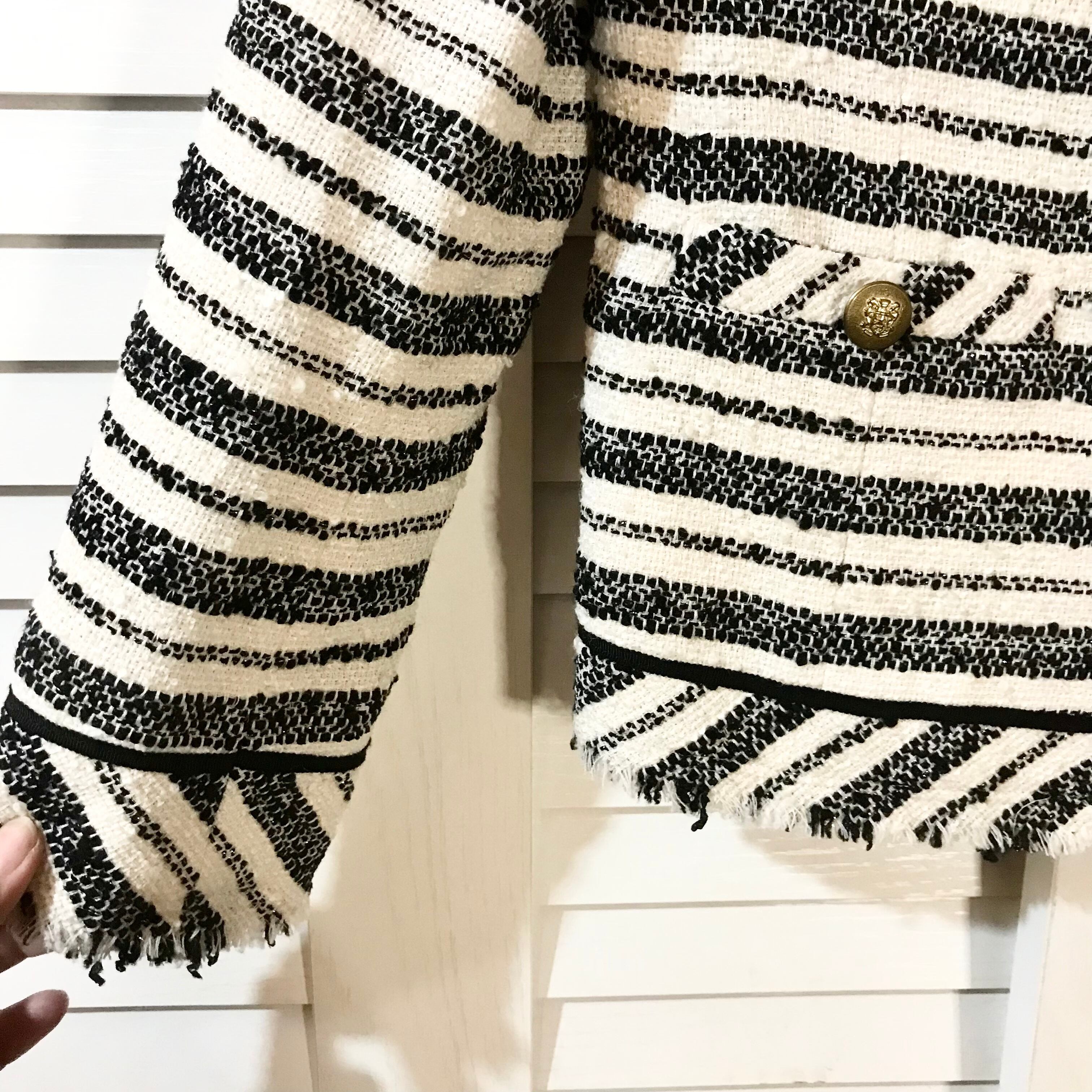 Spick&Span ランダムボーダー ノーカラーのシャネルツイードジャケット ゴールドヤーン入りモノトーン