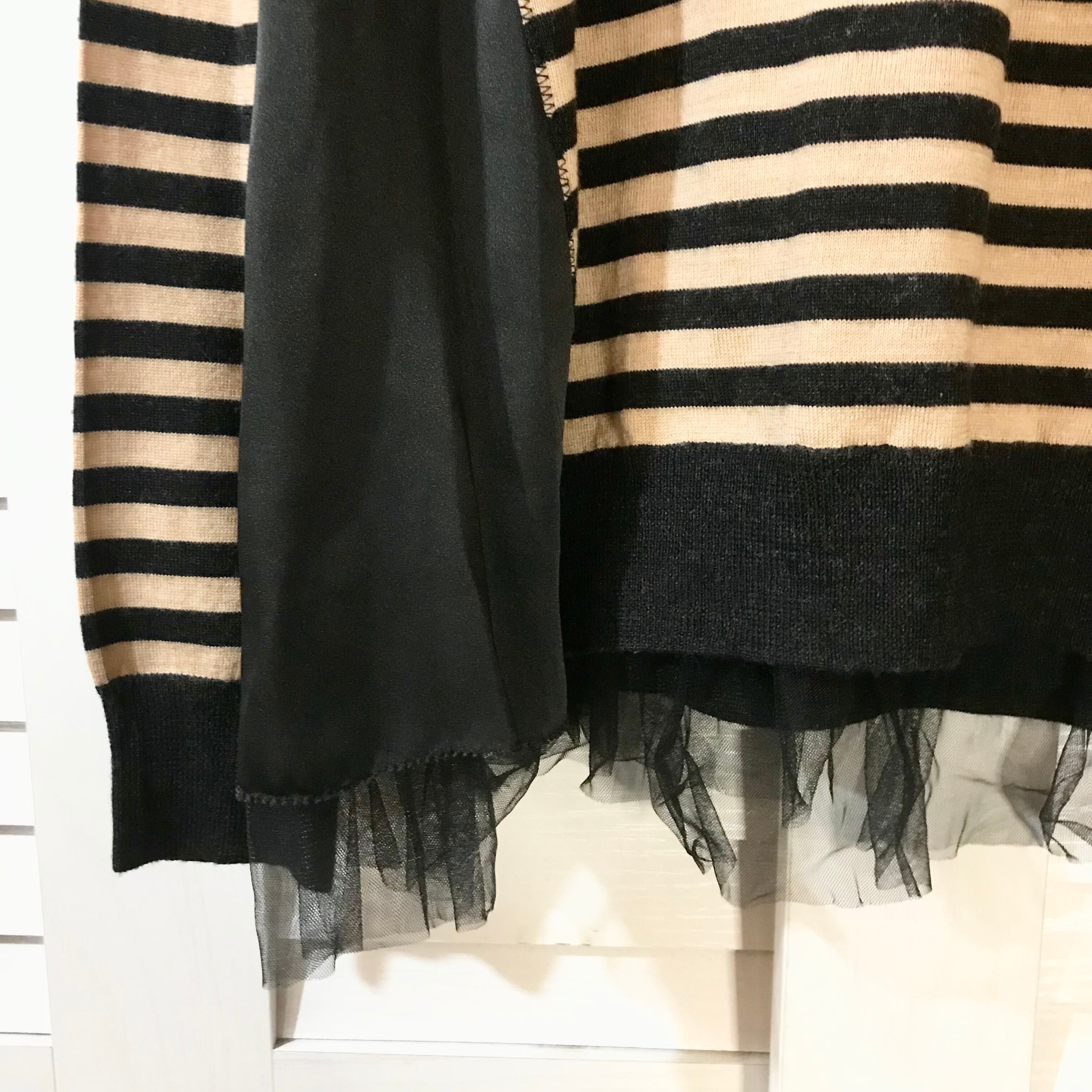 SHIPS ソリッドボーダーサテン&チュールコンビニットソー ベージュ×ブラック | お洋服屋さん 『GOKKO』