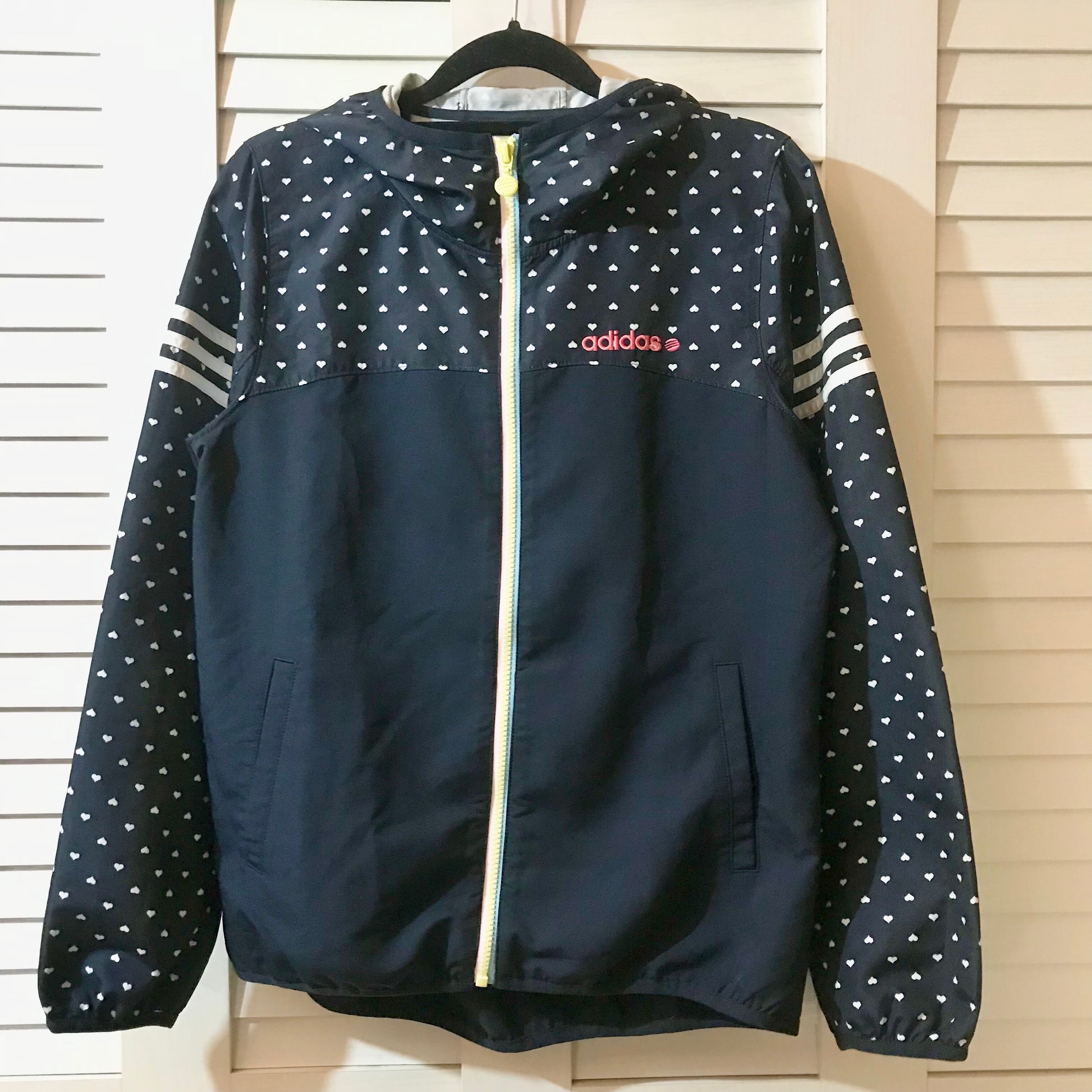 adidas パステルレインボージップのハートドットウィンドブレーカー スリーライン ネイビー