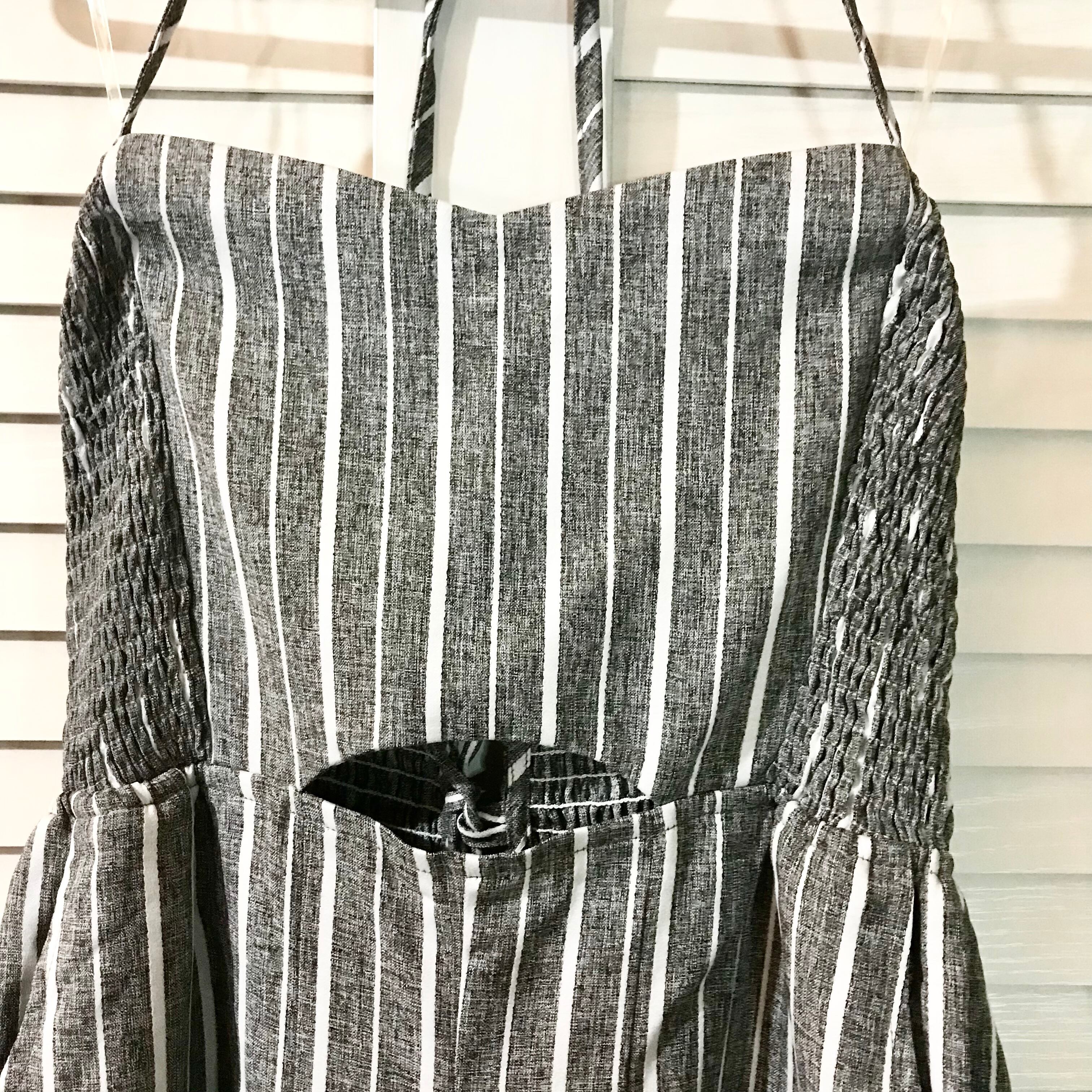 ROSE BUD ピンストライプ オールインワンサロペットワイドパンツ グレー