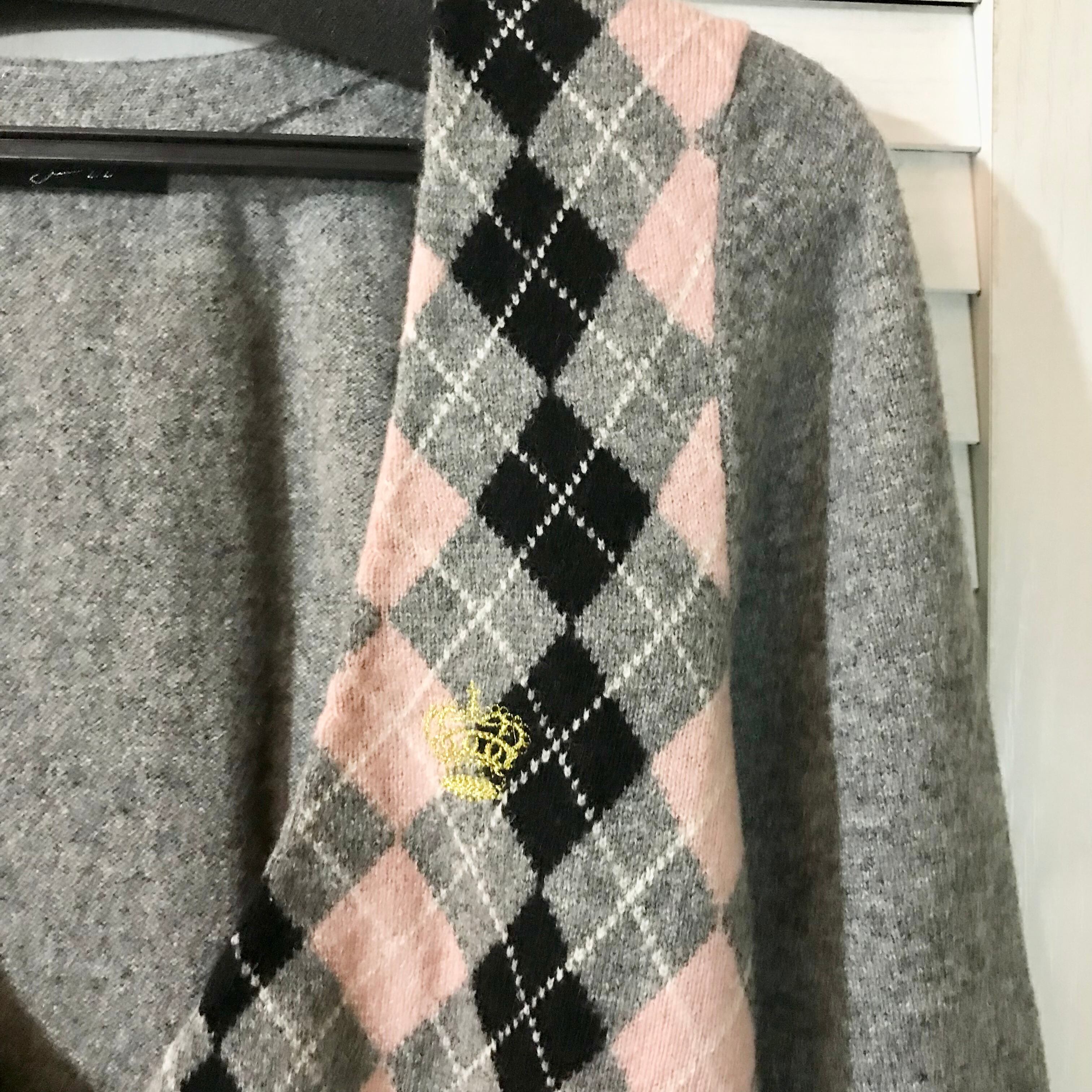 Candy Stripper クラウン刺繍のアーガイルウールニットカーデ グレー | お洋服屋さん 『GOKKO』