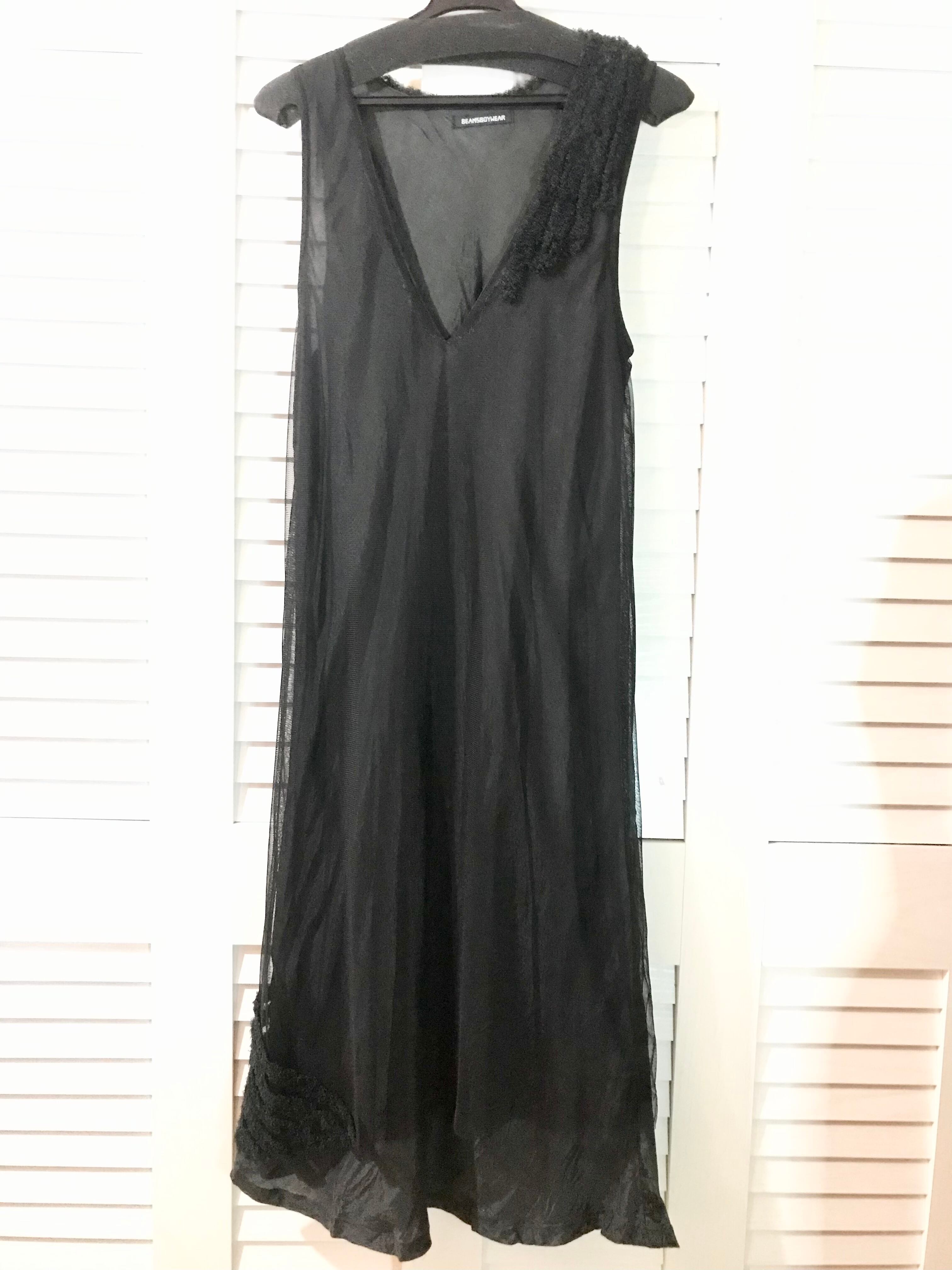 BEAMS BOY サテン&トリコット フリルデザインワンピ ブラック | お洋服屋さん 『GOKKO』