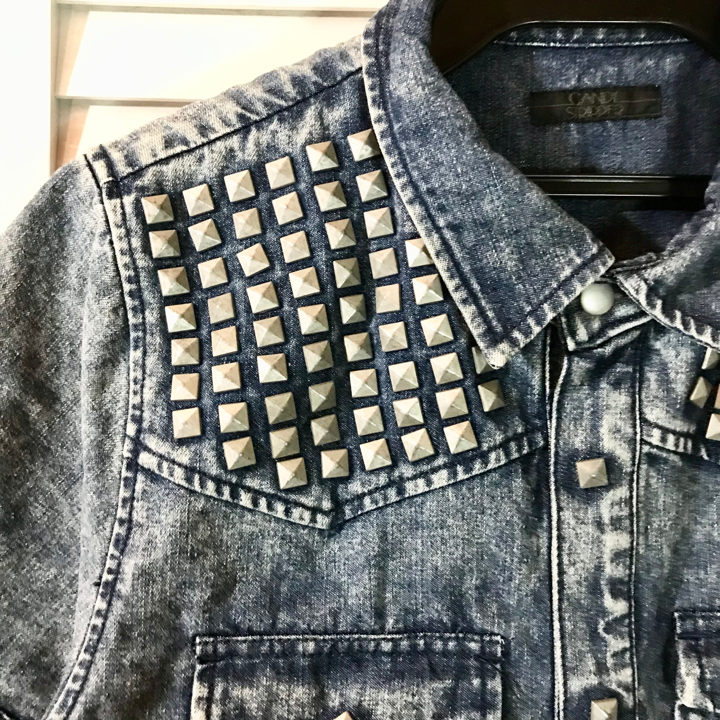 Candy Strepper ケミカルデニムのスタッズシャツブルゾン ストーンウォッシュ