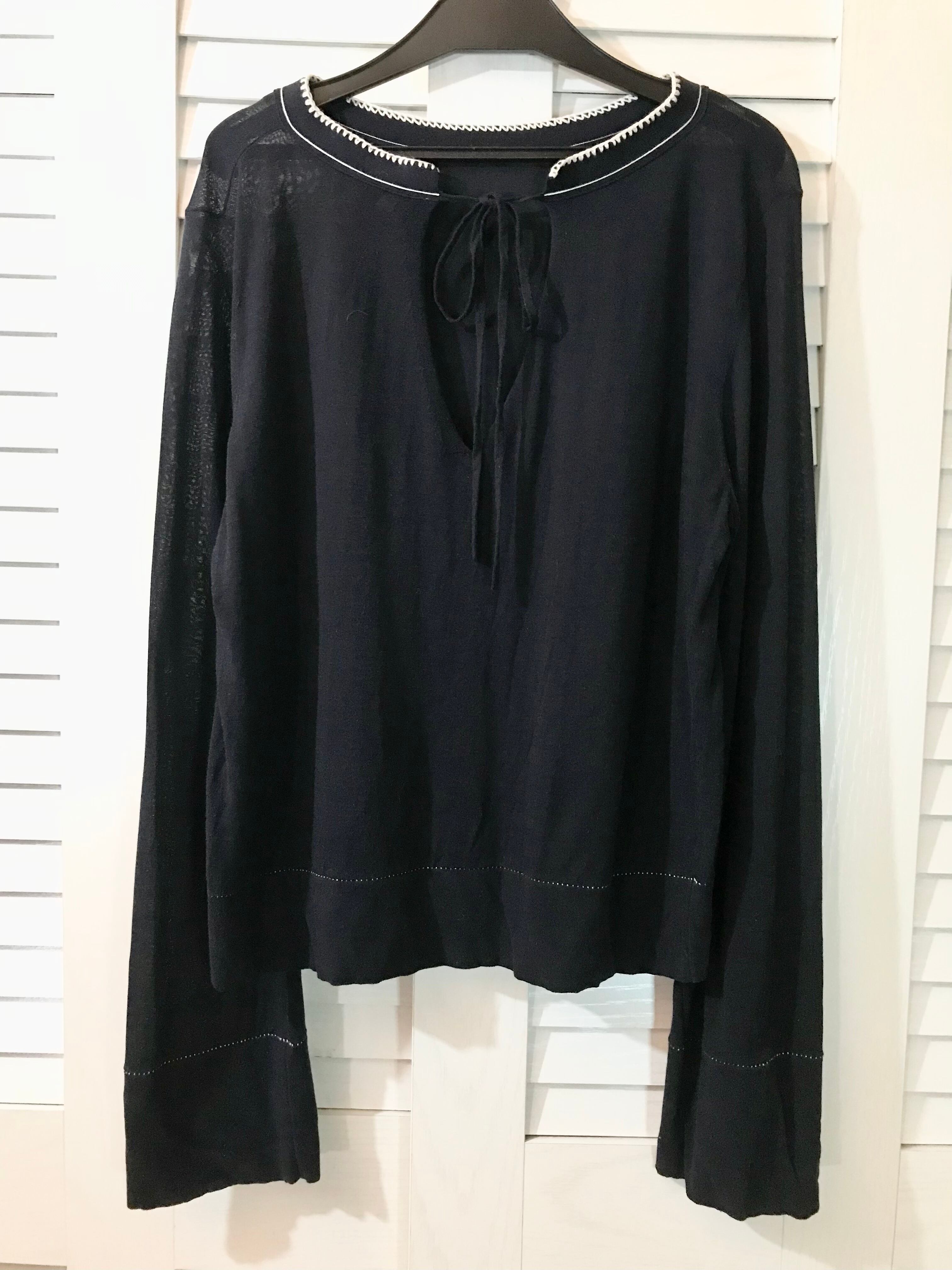 Theory トリムカラー リボン&ステッチデザイン コットンレーヨンニットソー ネイビー | お洋服屋さん 『GOKKO』
