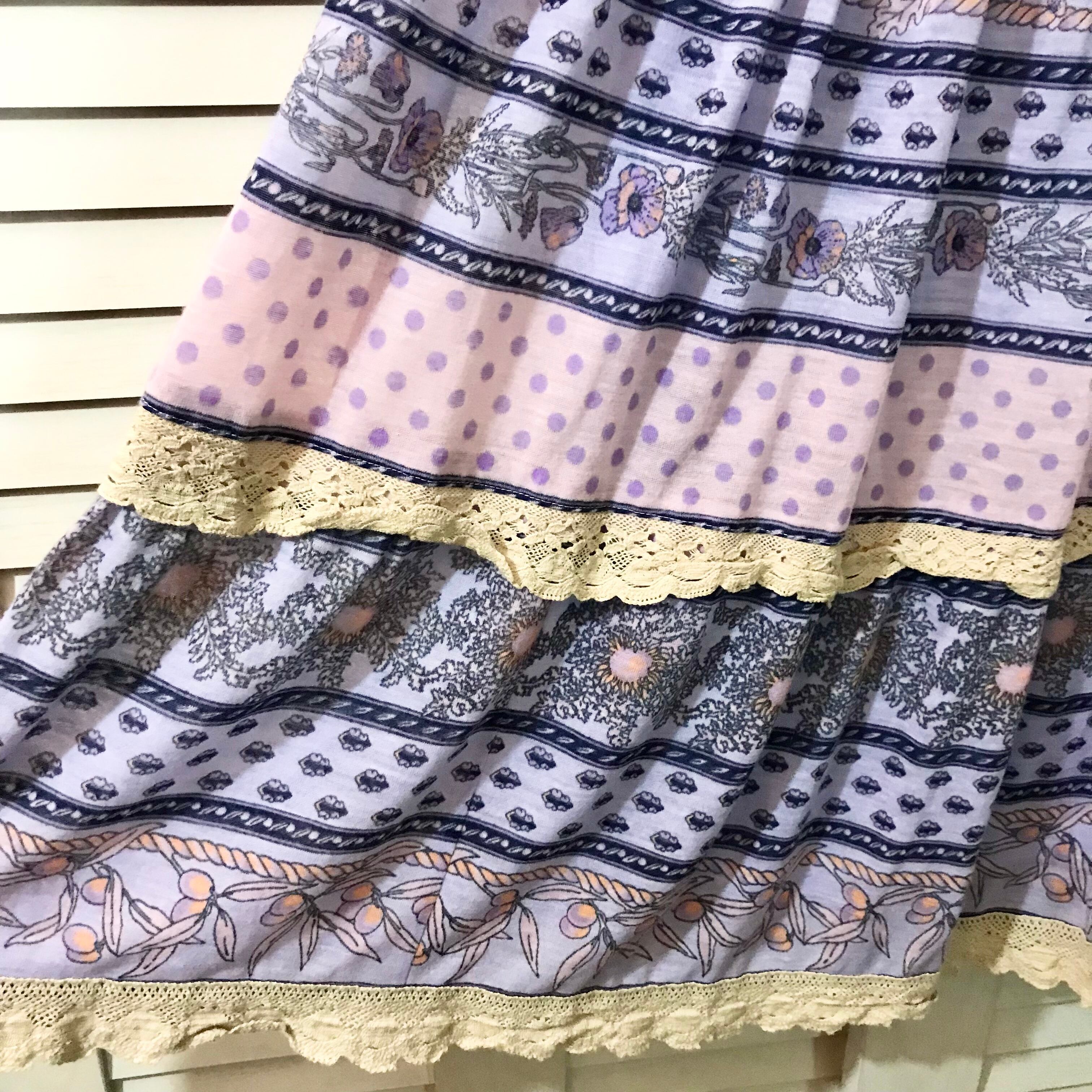 Language ヨーロピアンテイスト パステルカラーのカットソーティアードスカート 裏地付き ピンクパープル