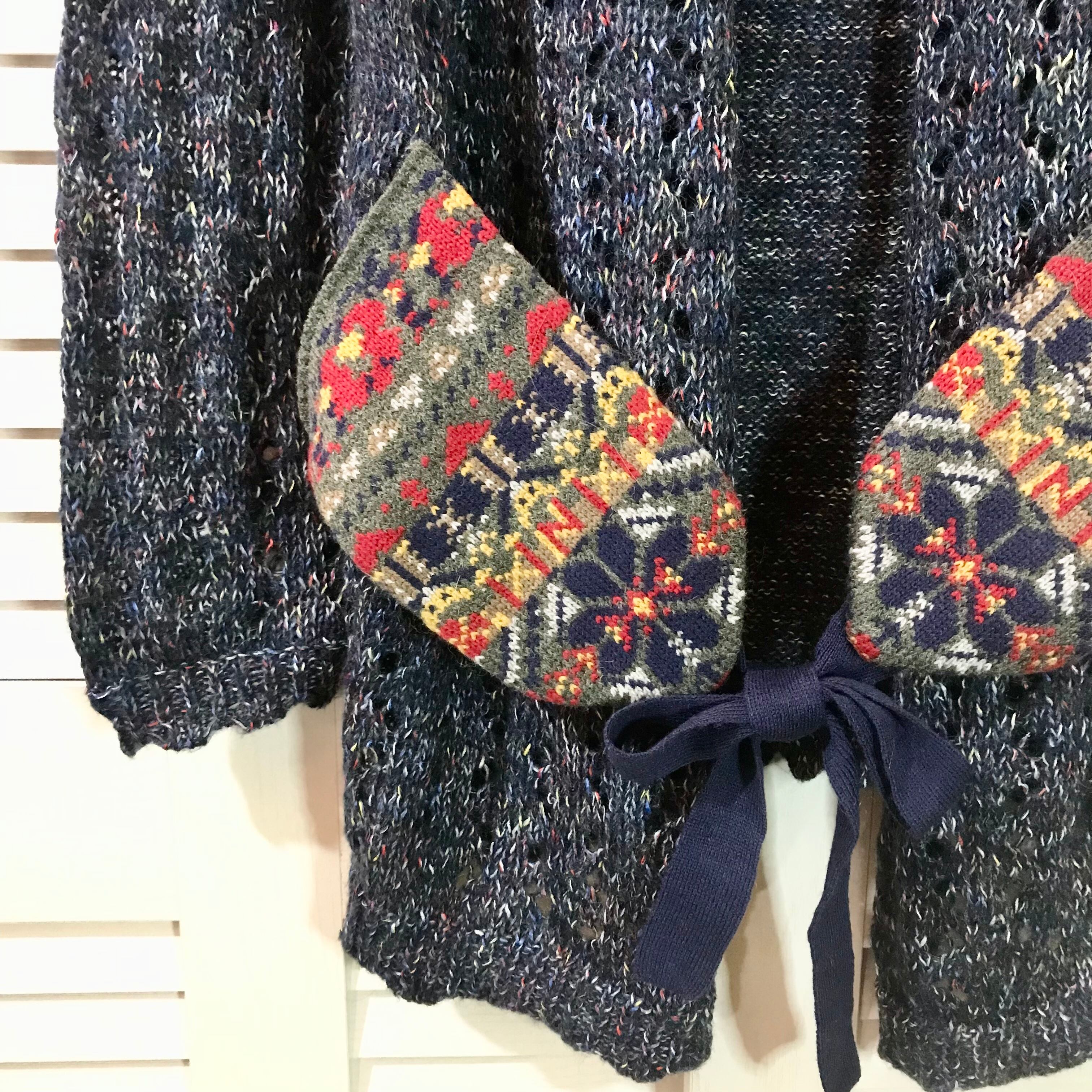 Ne-net ミックスヤーンのミトンニット針ぬきカーデ ネイビー