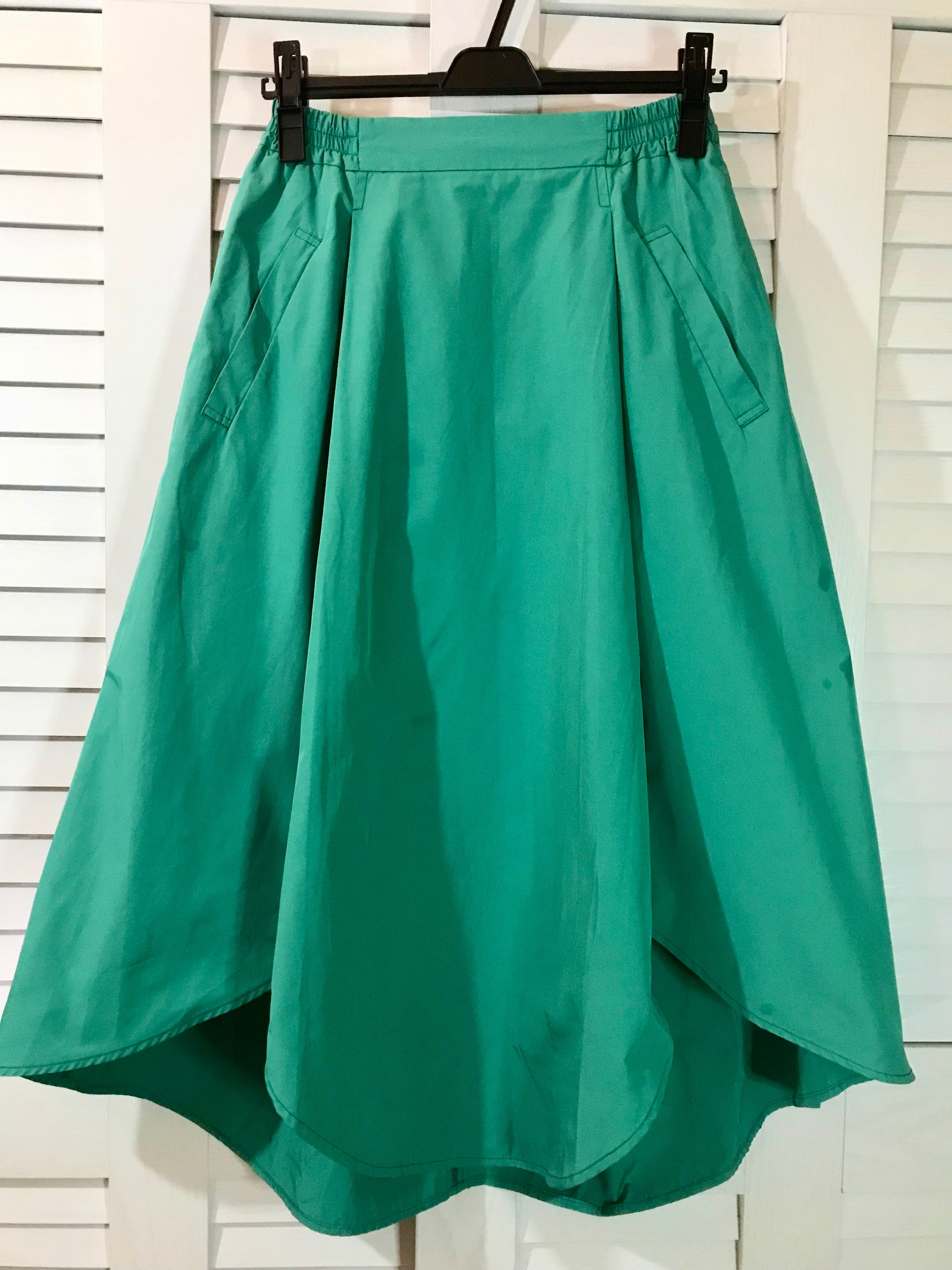 URBAN RESEARCH フラワースカラップ タックフレアータフタスカート エメラルドグリーン