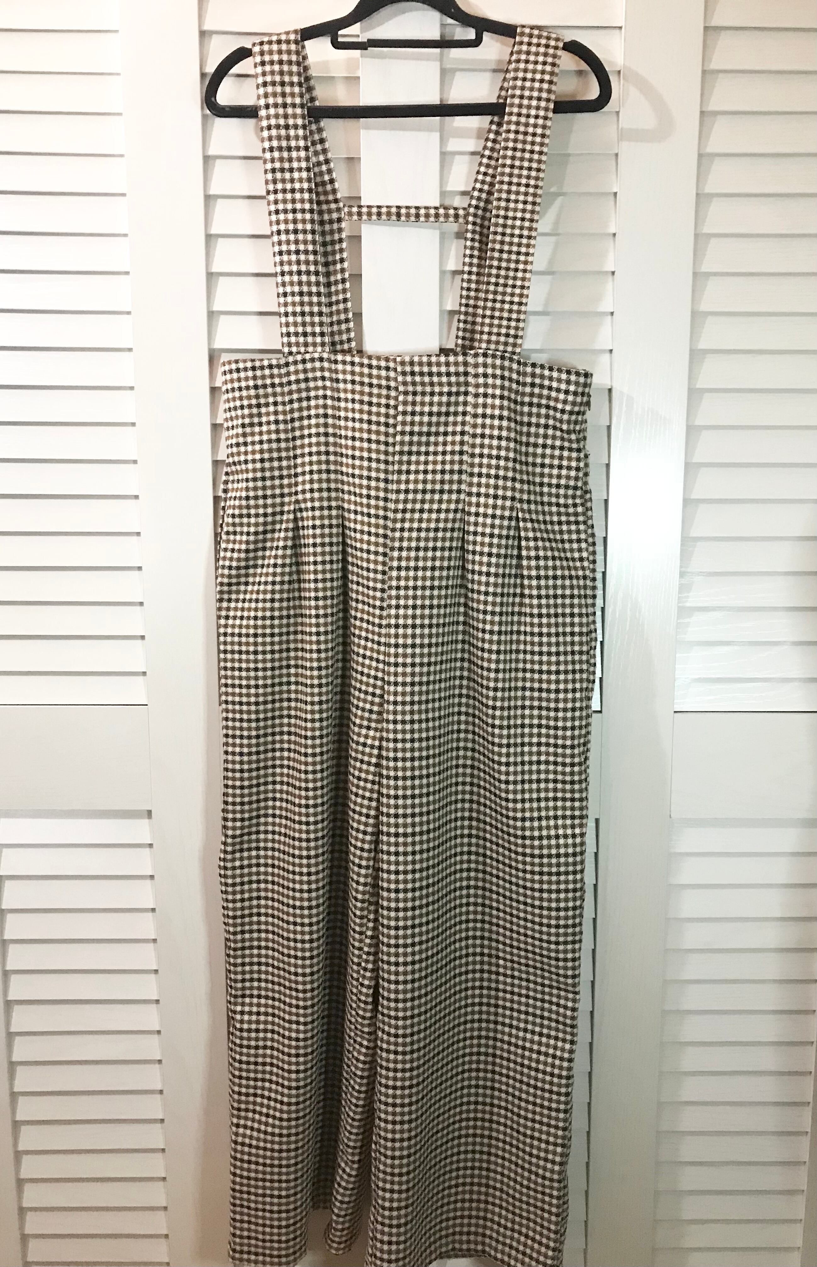 Bab スターチェックのハイウエスト2タックワイドパンツきれいめサロペット ページ×ブラック×キャメル