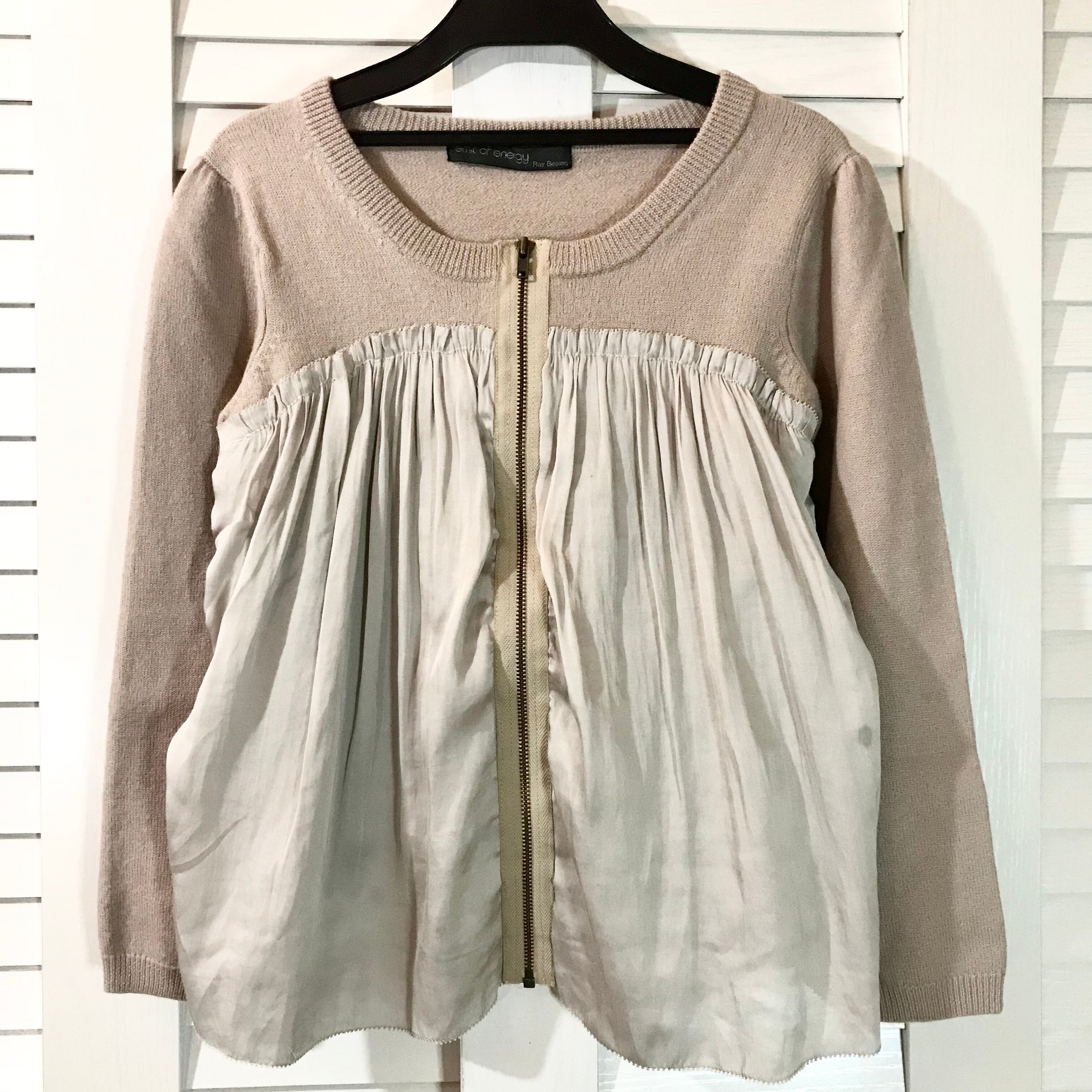 Ray BEAMS バックサテン使いのジップアップカーデ グレーベージュ | お洋服屋さん 『GOKKO』