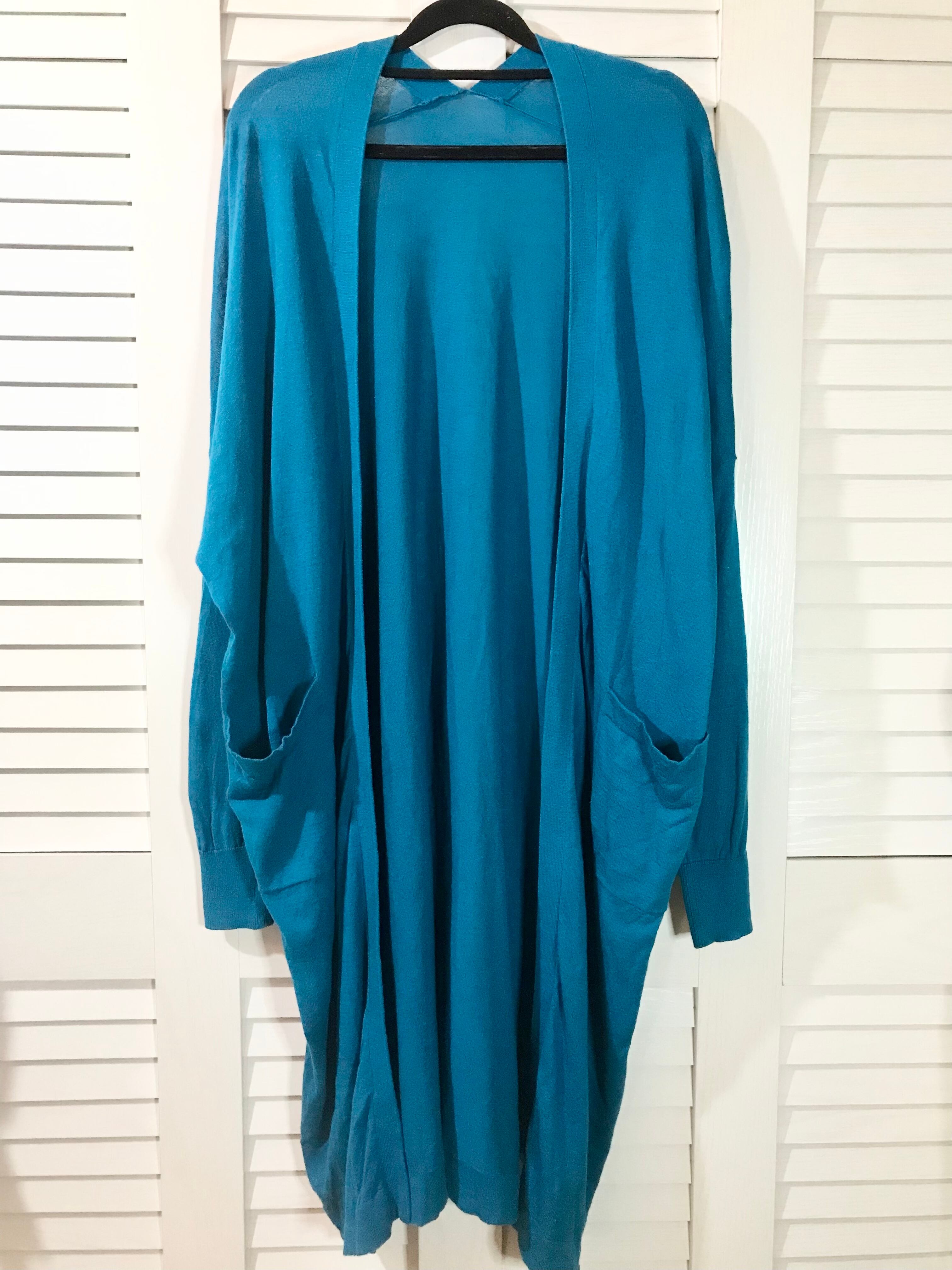 zootie コットンリネン トッパーロングニットカーデ ブルー