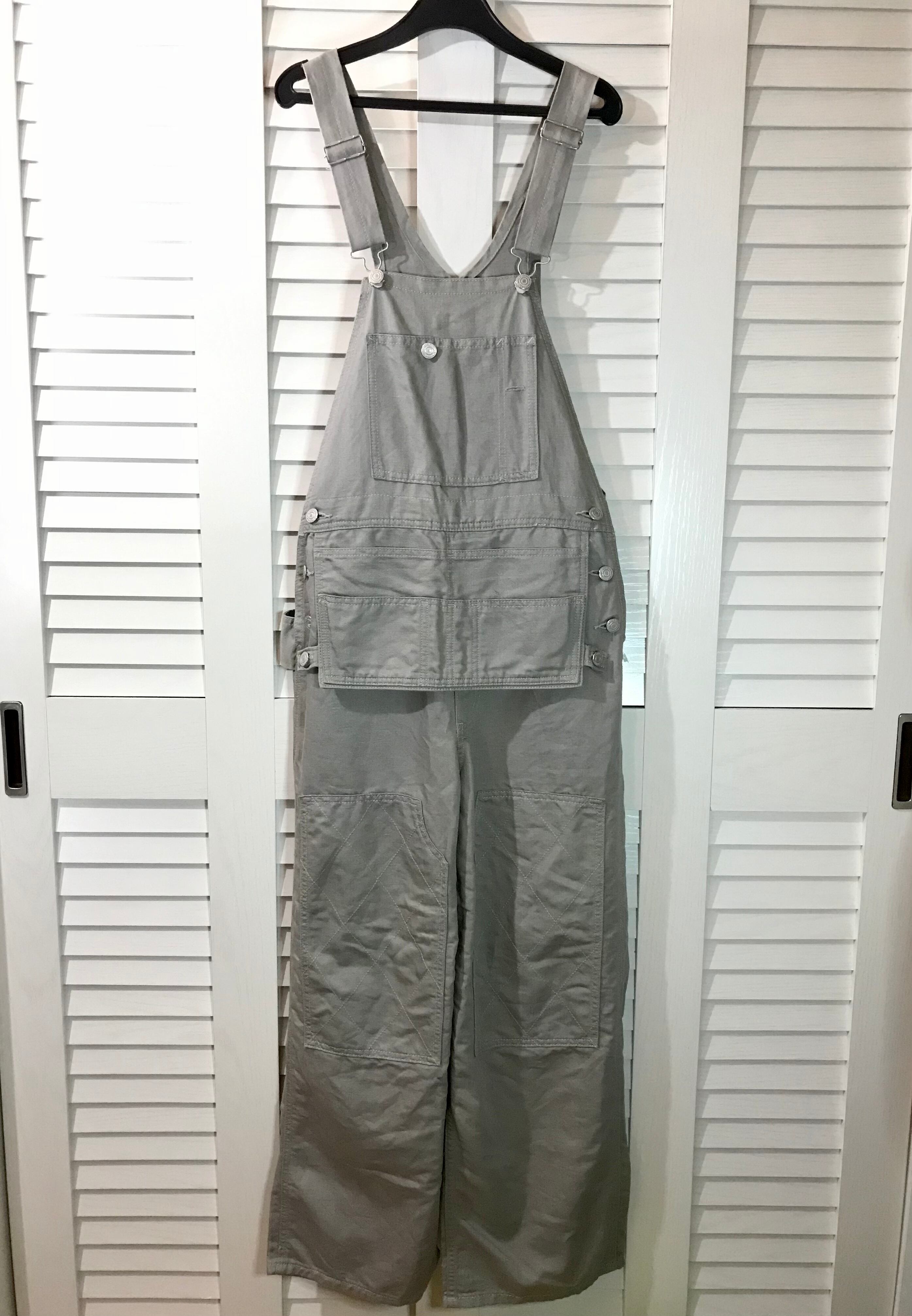 &sloe コットンリネン ウエストポケット&ひざパッチ ワークデザインサロペット ライトグレー