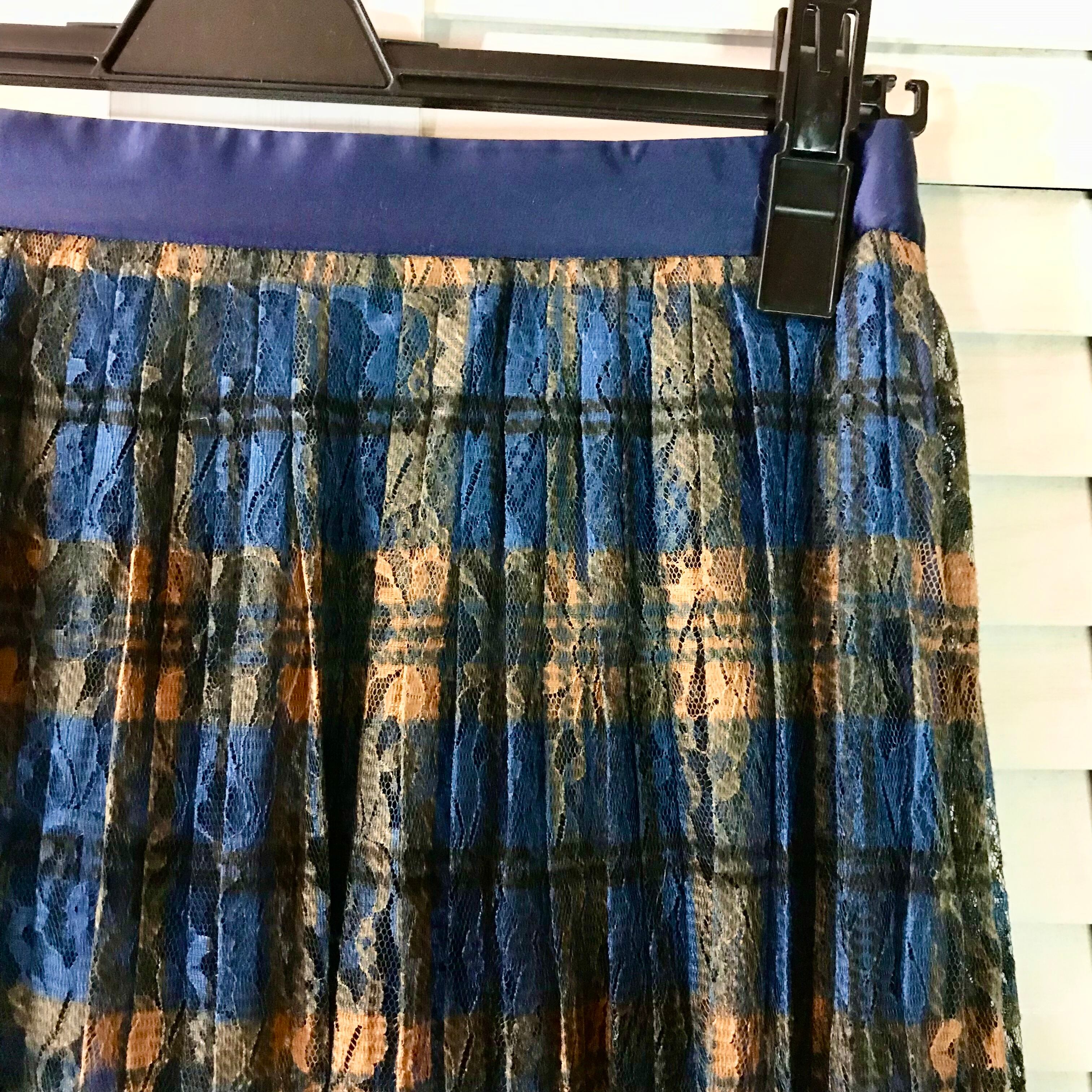 MOUSSY タータンチェックプリントレースのアコーディオンプリーツスカート ネイビー×イエロー