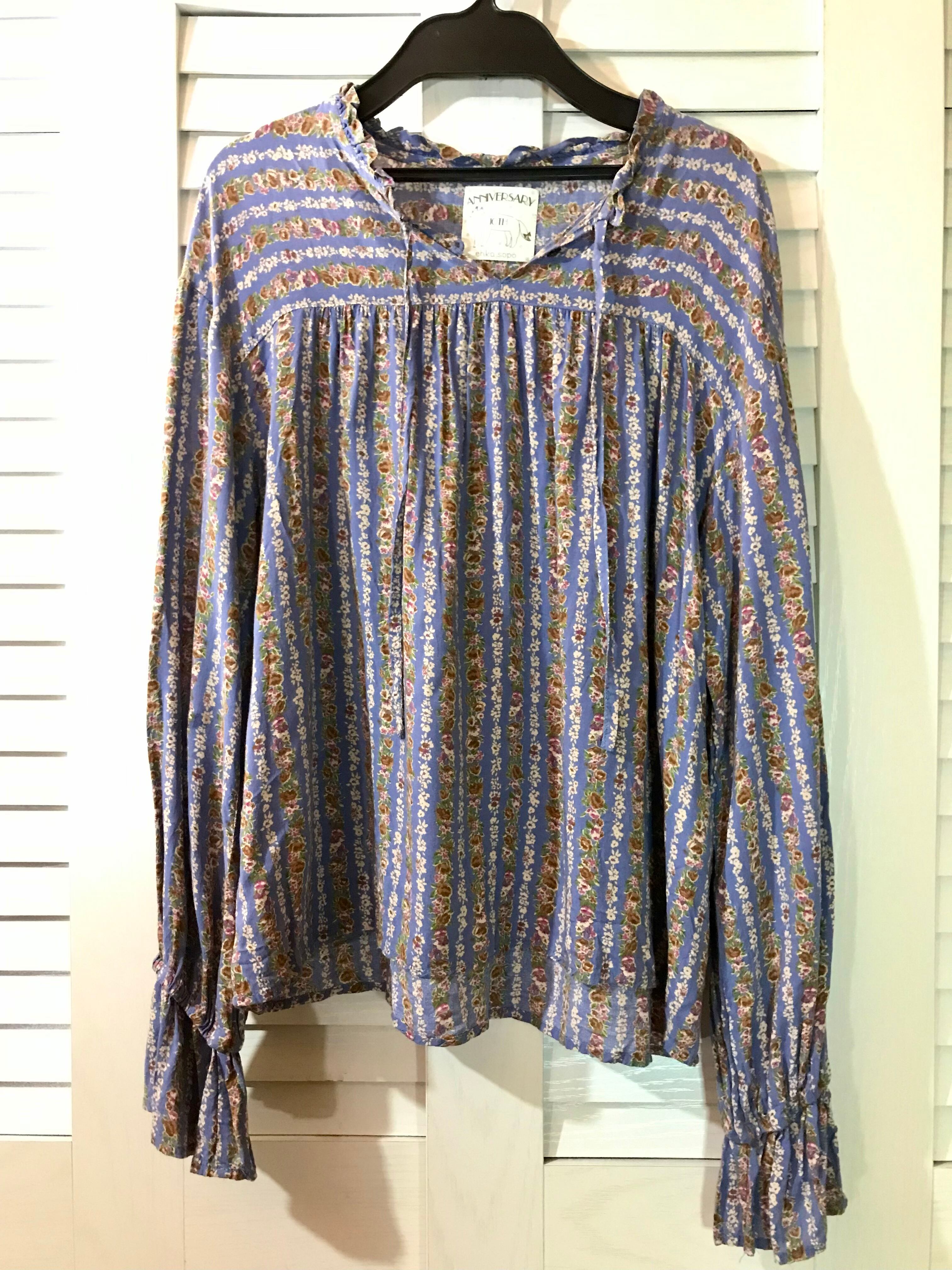 ehka sopo ロマンティックフラワーボーダーレーヨンブラウス サックスブルー | お洋服屋さん 『GOKKO』