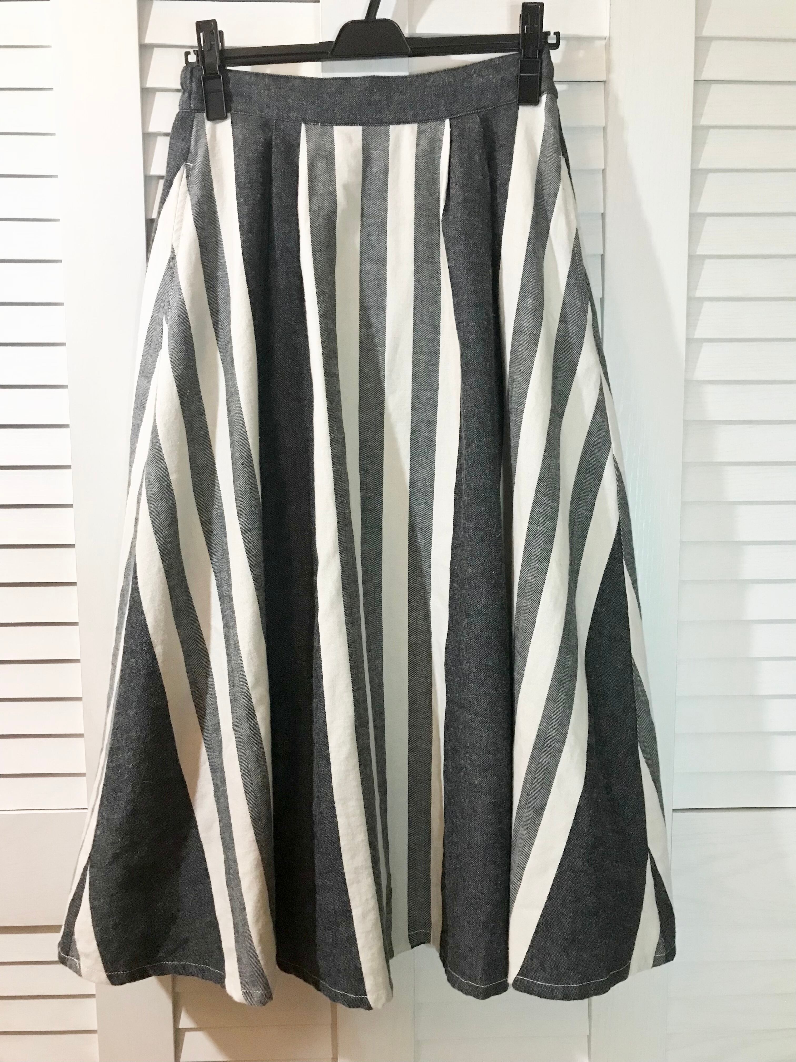 Samansa mos2 コットンリネンBIGストライプフレアースカート グレー