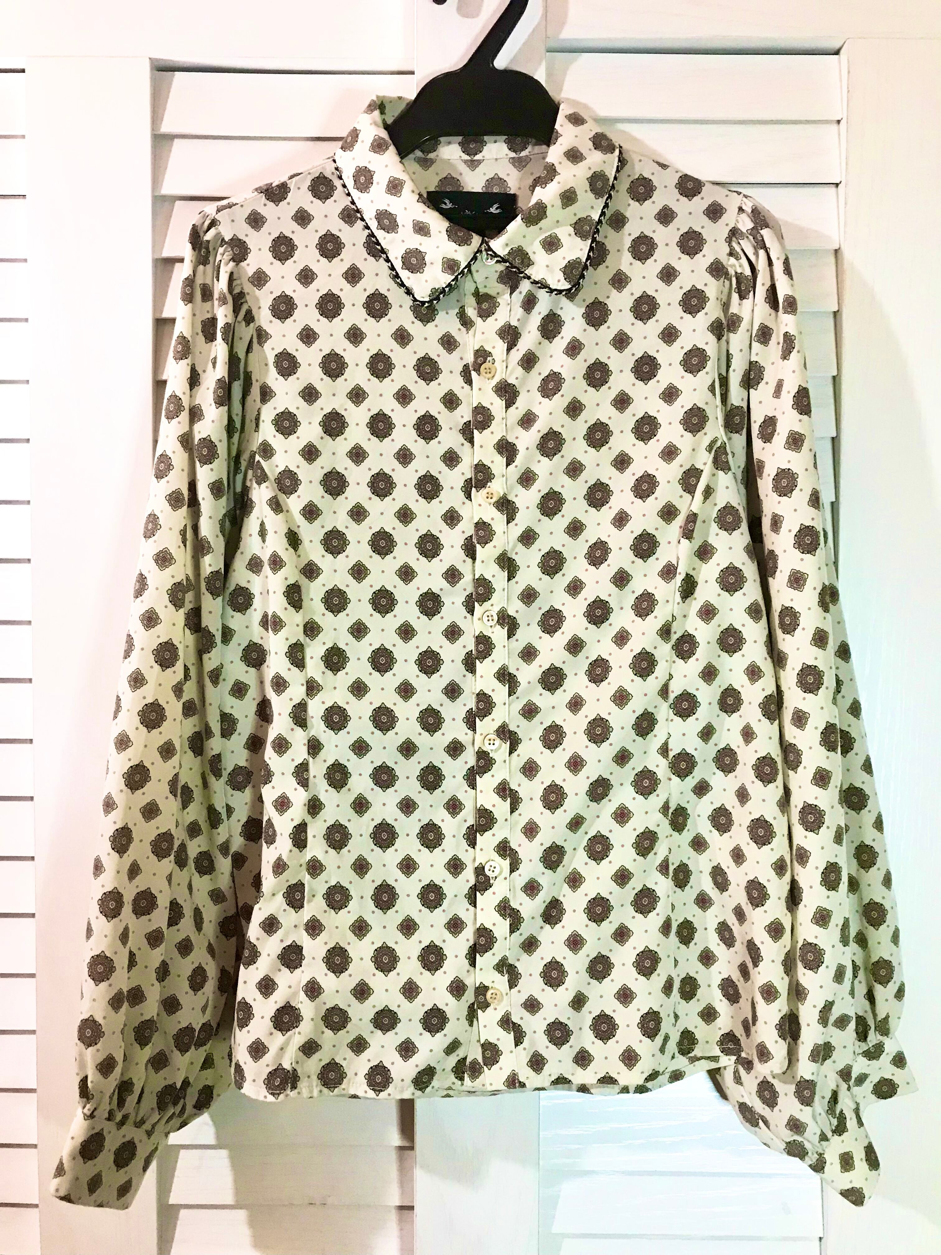 SIERA LEONE ヨーロピアンダマスク柄インショルダー ボリュームスリーブブラウス クリーム