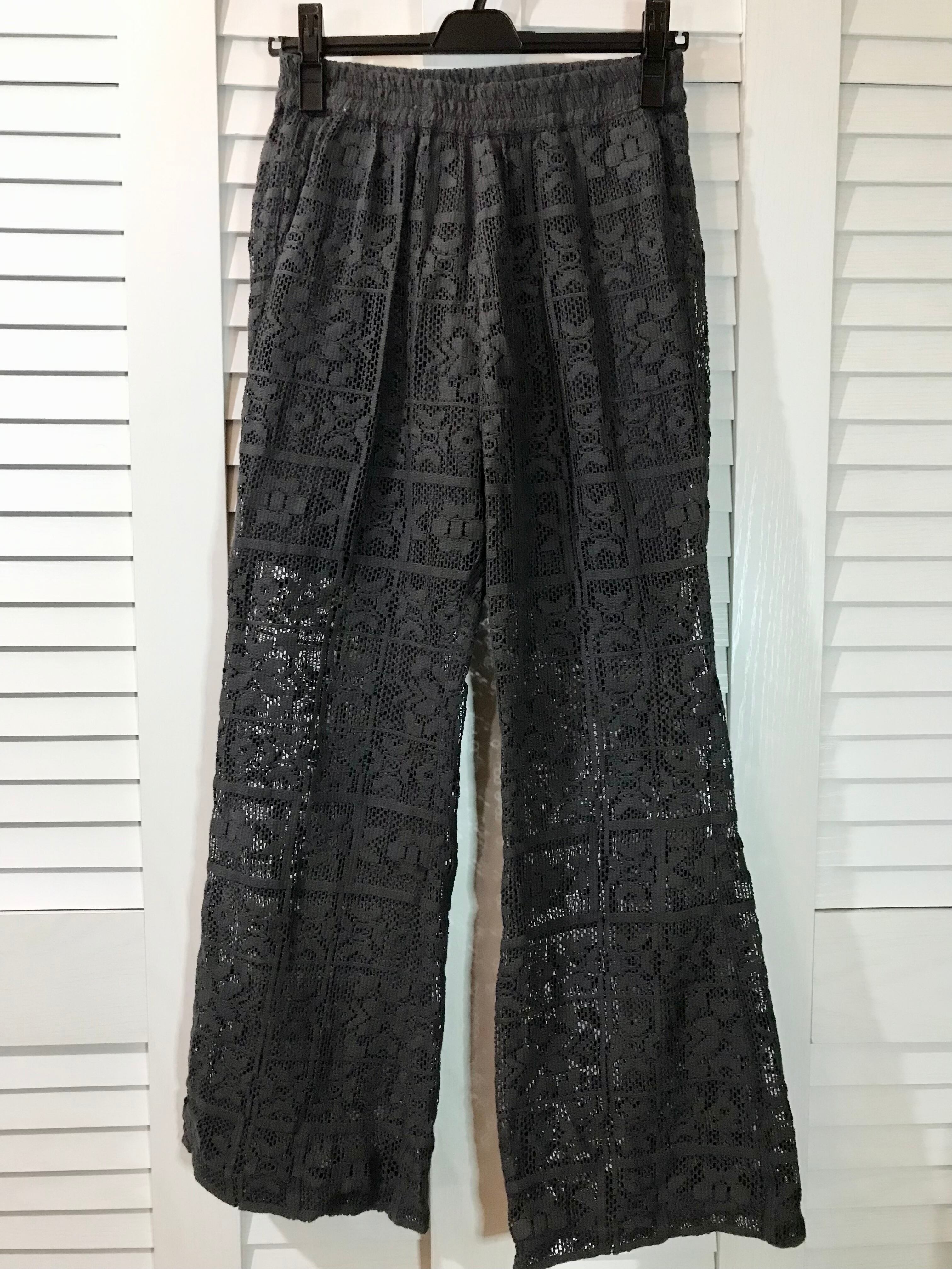 NOLLEY'S スクエアフラワーコットンレースパンツ チャコールグレー