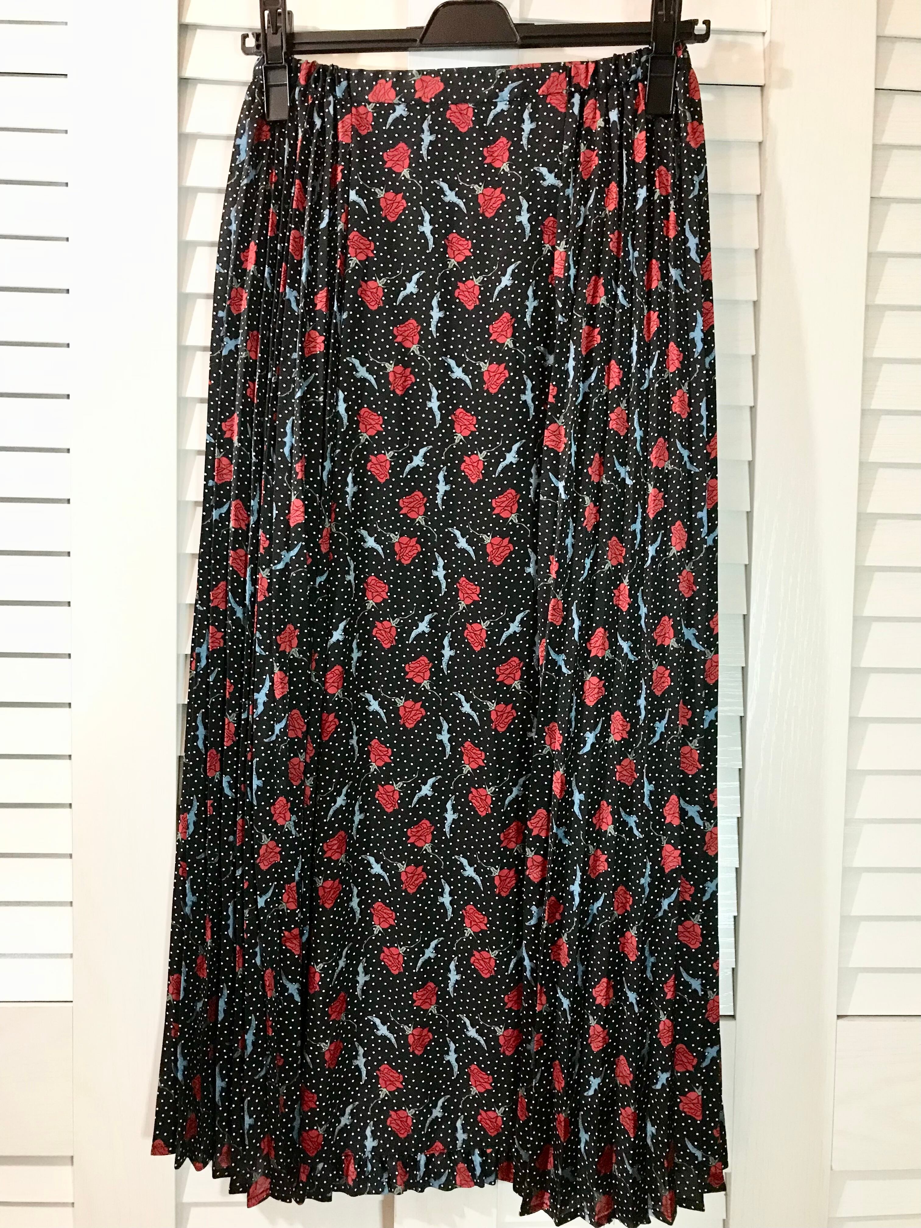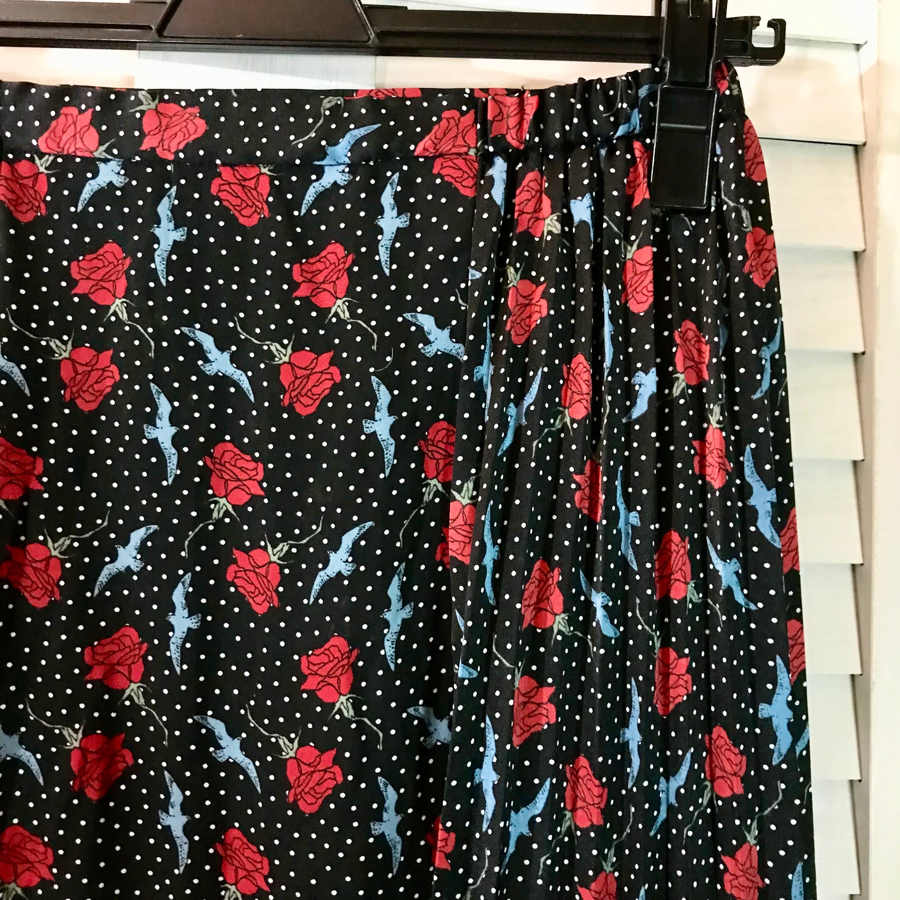 GU×UNDERCOVER 薔薇と鳥と水玉模様 アコーディオンプリーツスカート ブラック