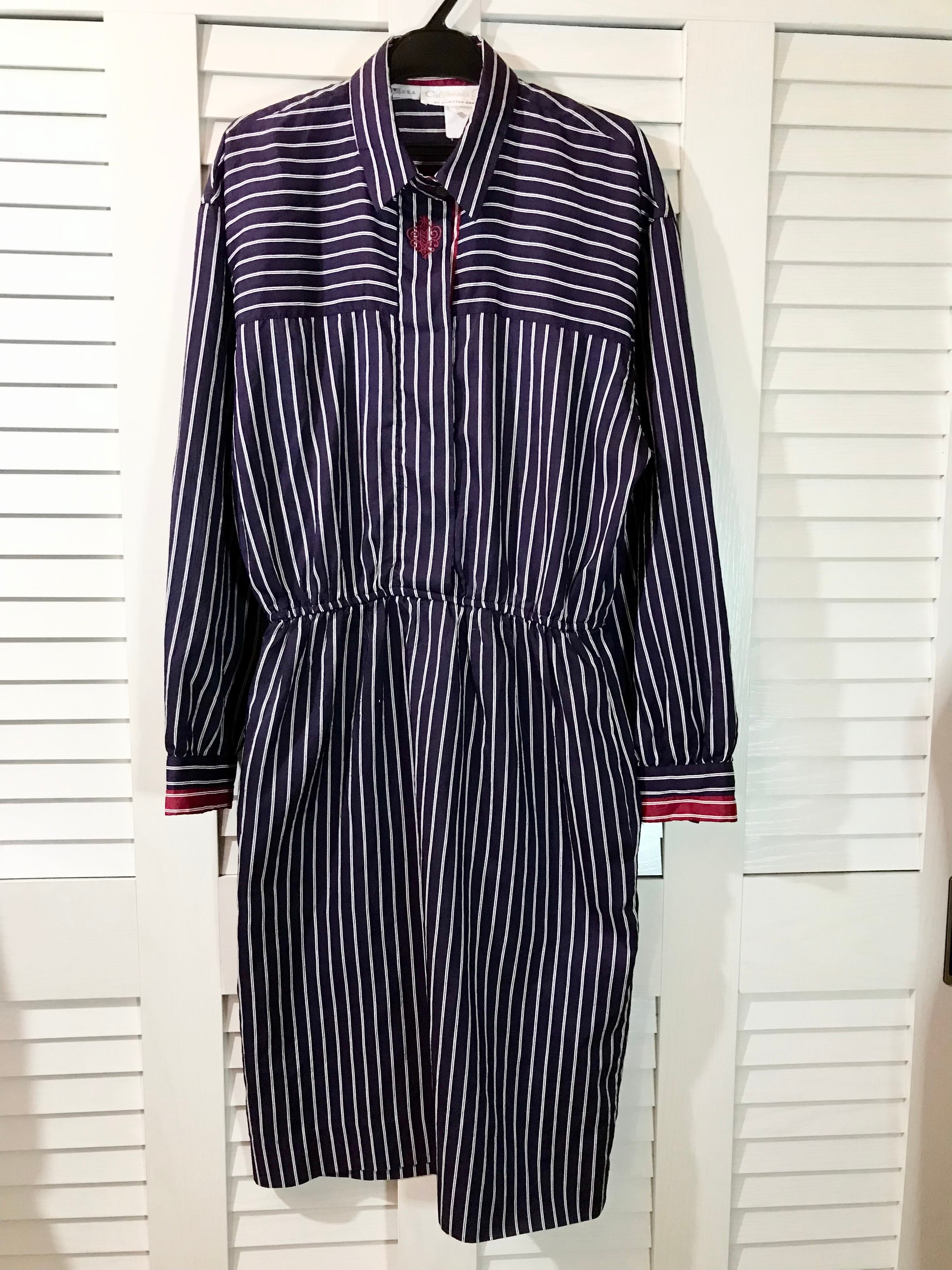 DORCTHY SAMWEL 【ヴィンテージ】激レア!紋章刺繍入り ピンストライプナイロンシャツワンピ パープル