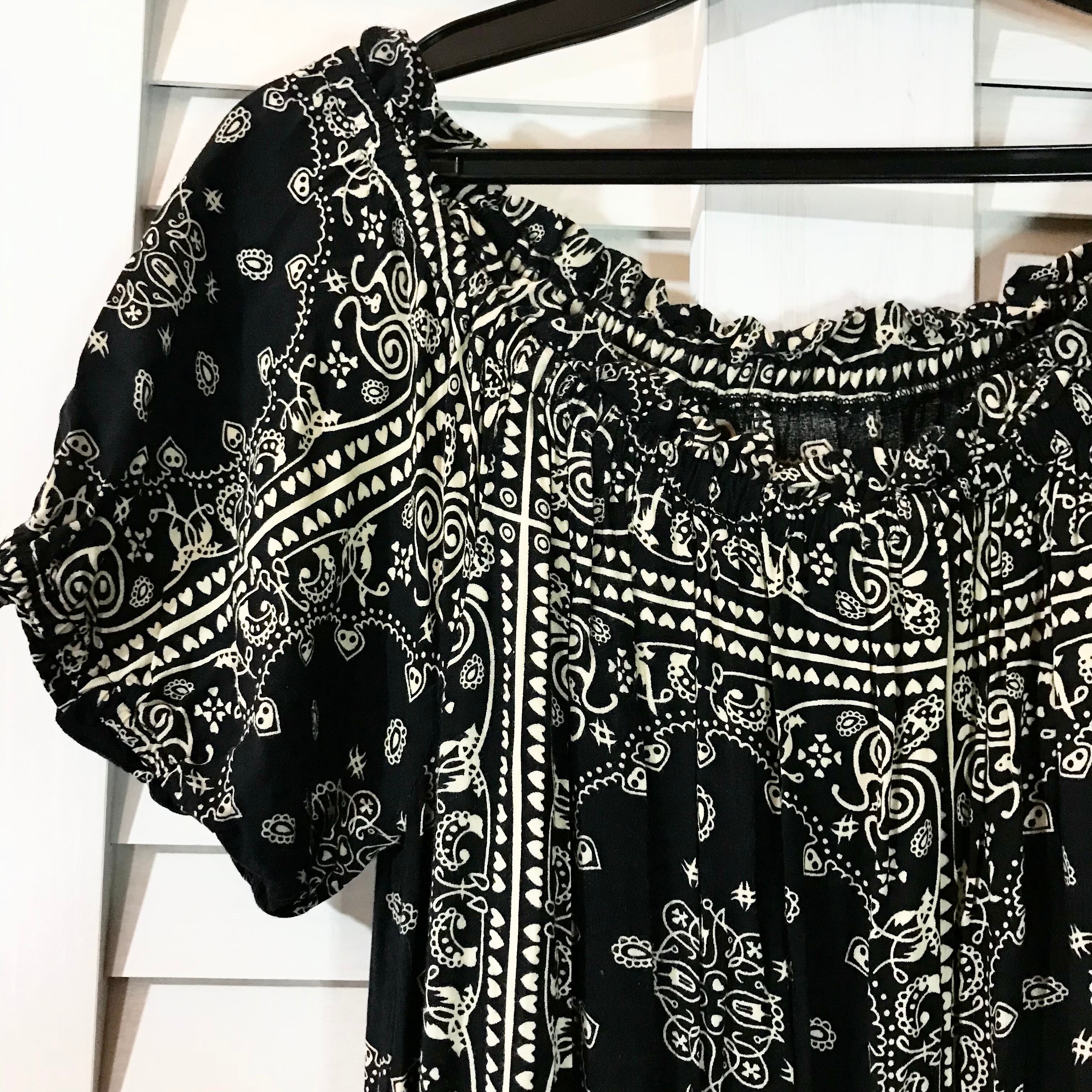 Broderie & Co バンダナ柄レーヨン ワイドパンツ オールインワン ブラック