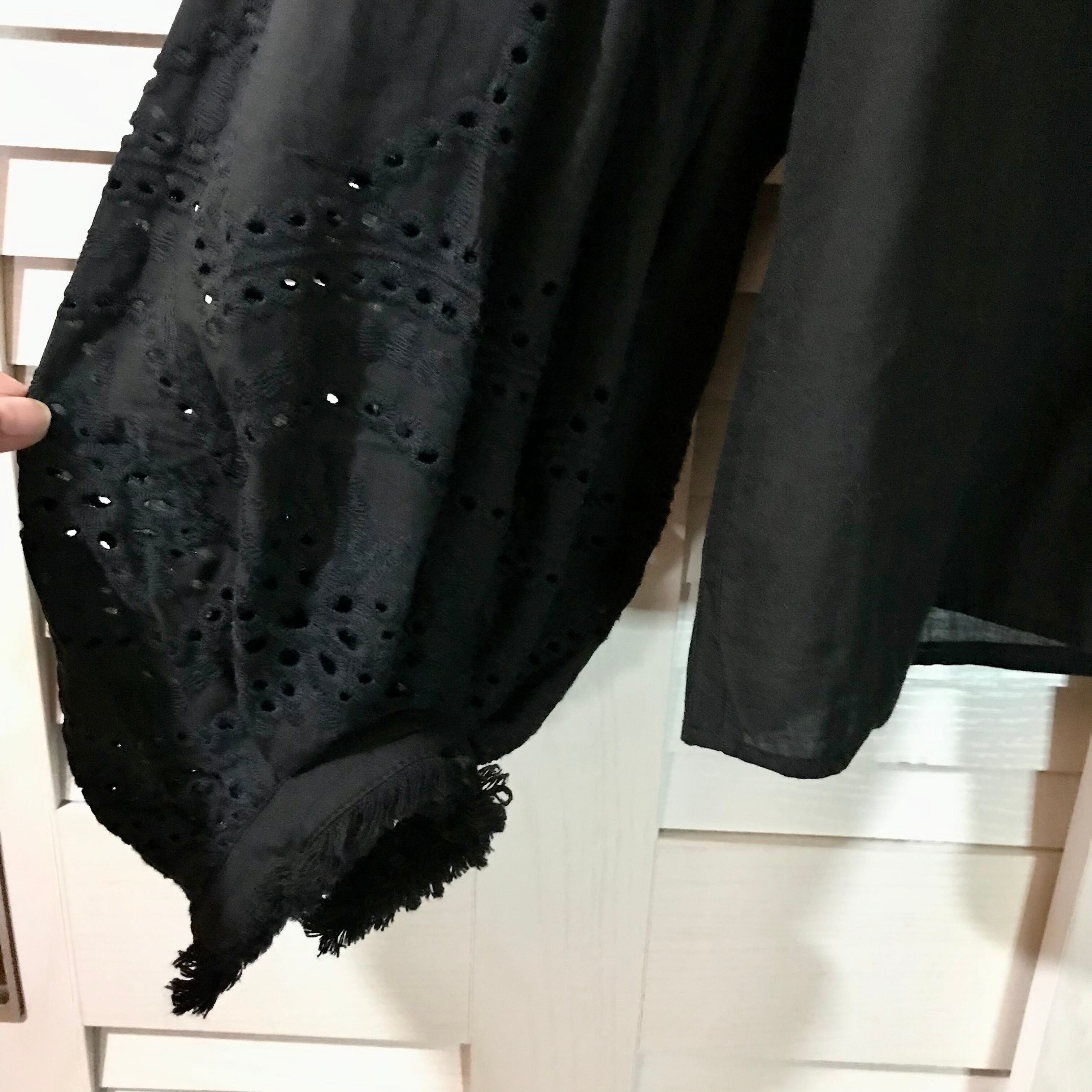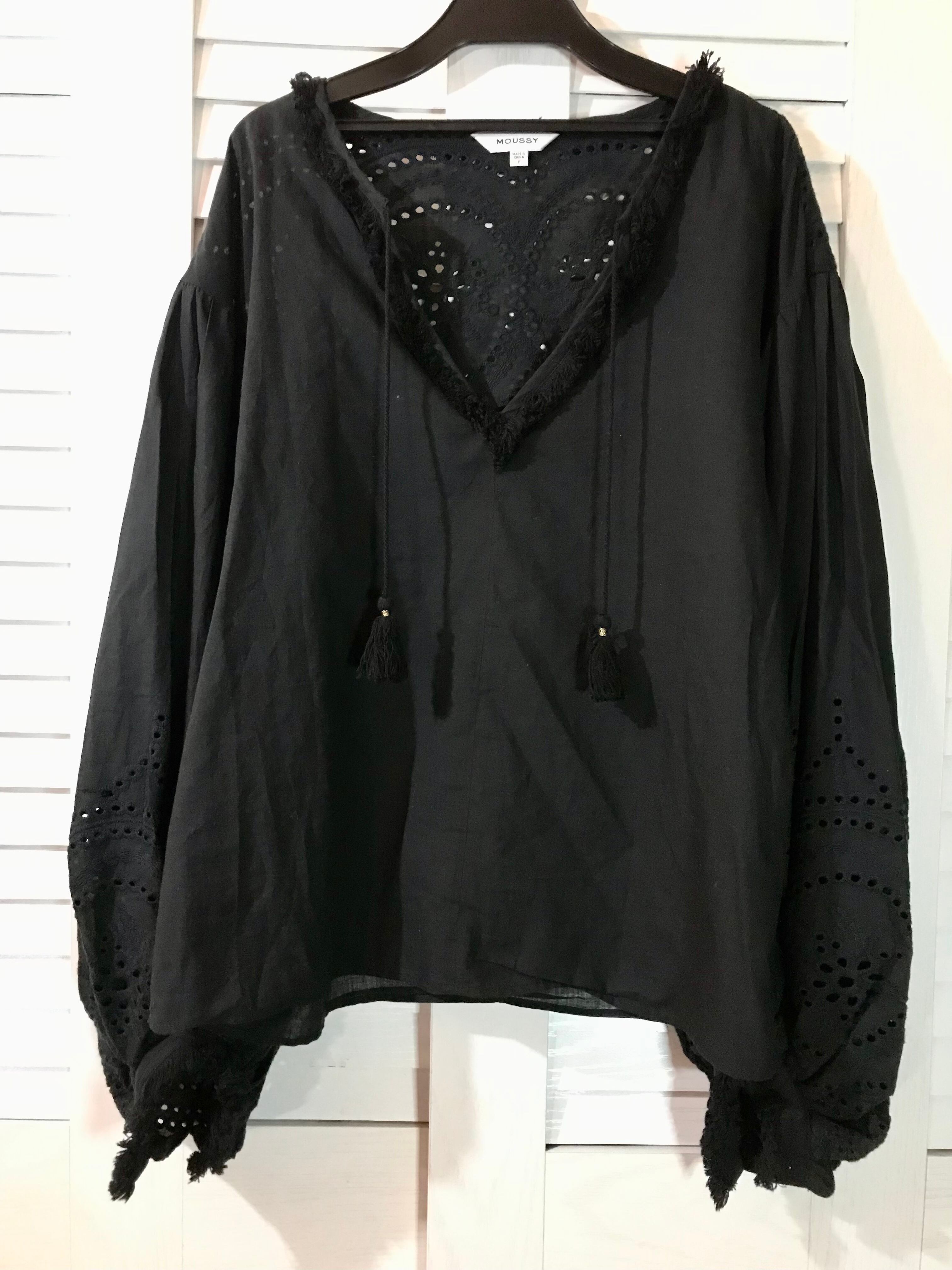 MOUSSY フリンジ&カッティングレース ボリュームスリーブ チュニックブラウス ブラック